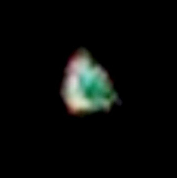 That night, the lightship Terebinth (which flew over decloaked on January 20th around Canopus and Sirius as a luminous red triangle) appeared visibly again. The Terebinth gave three bright flashes, once again close to the stars of the Hu Shi asterism, between Sirius and Canopus, before giving one last flash closer to Orion. The ship came out in this photo in her familiar triangle form, this time with her distinctive red hue shading into green.