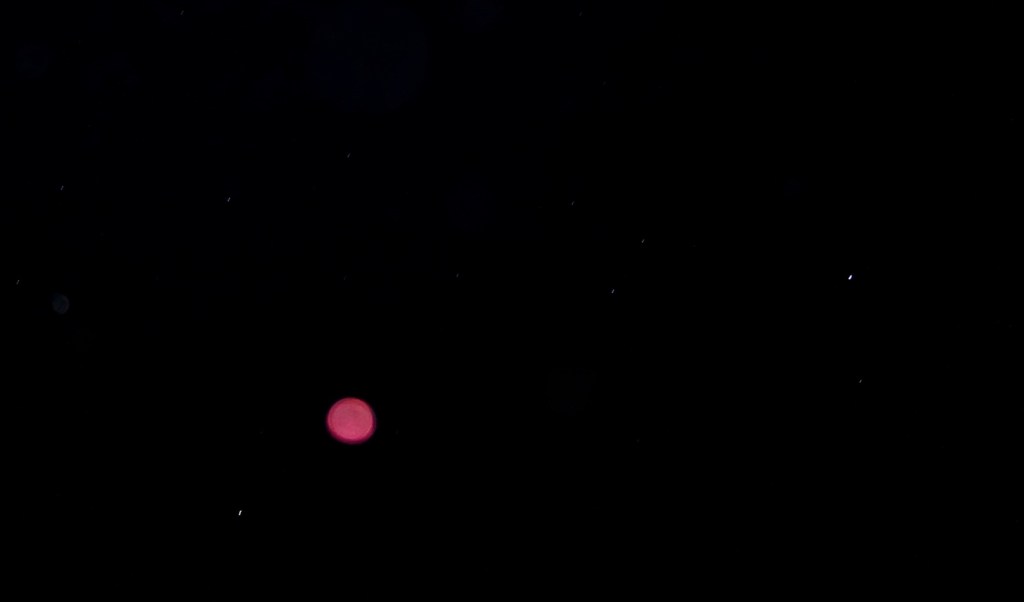 Finally, on the pyramid theme, this red-gold orb appeared in two photos at midnight on December 30th, above Sirius in the first frame, then dipping down low over Canopus in the second.