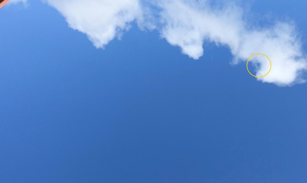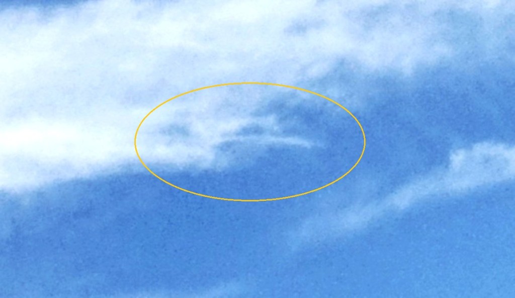 Back at home, on June 9th a portal opened overhead (reflected/echoed in the cloud below) among streams of brilliant white light codes flowing across the sky, before a disc-shaped support ship of the Meri’Ashar zipped through the portal, appearing in the photo below ”sideways”, as if tipped on one end.