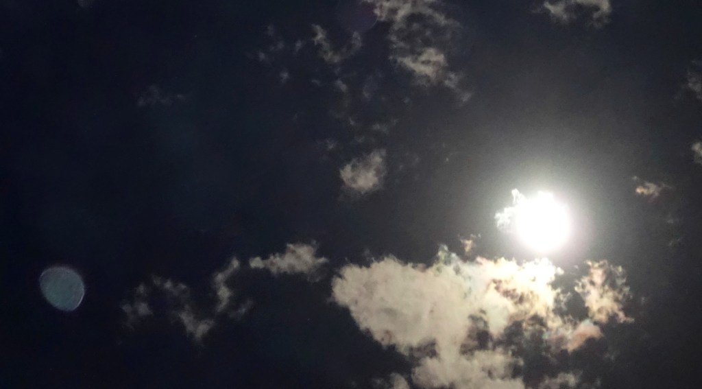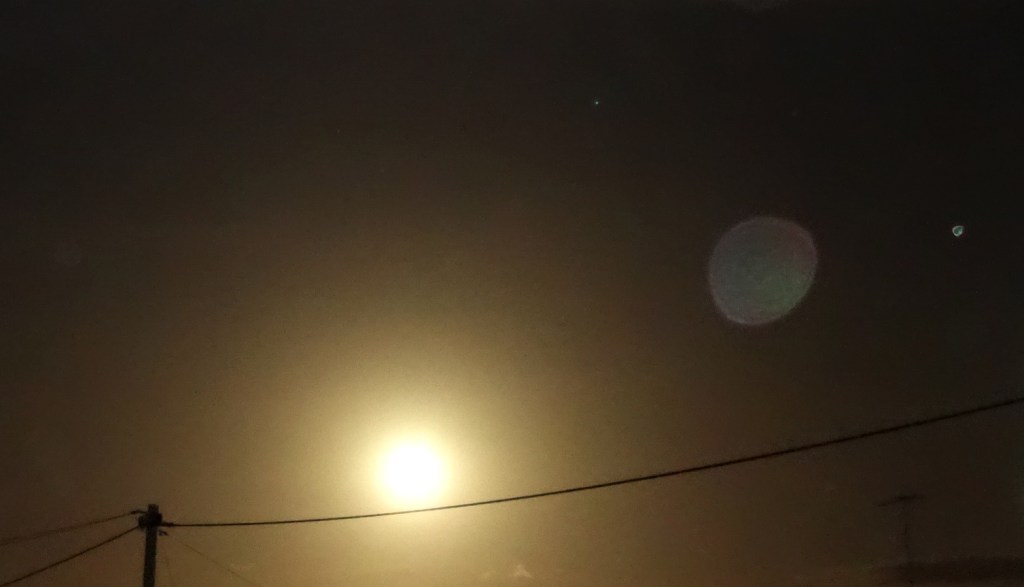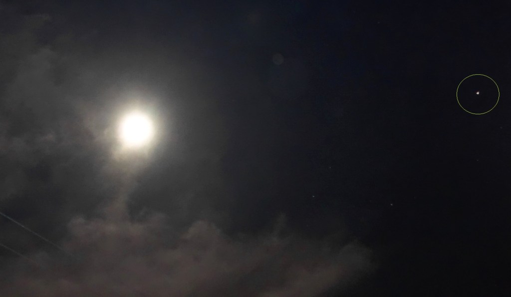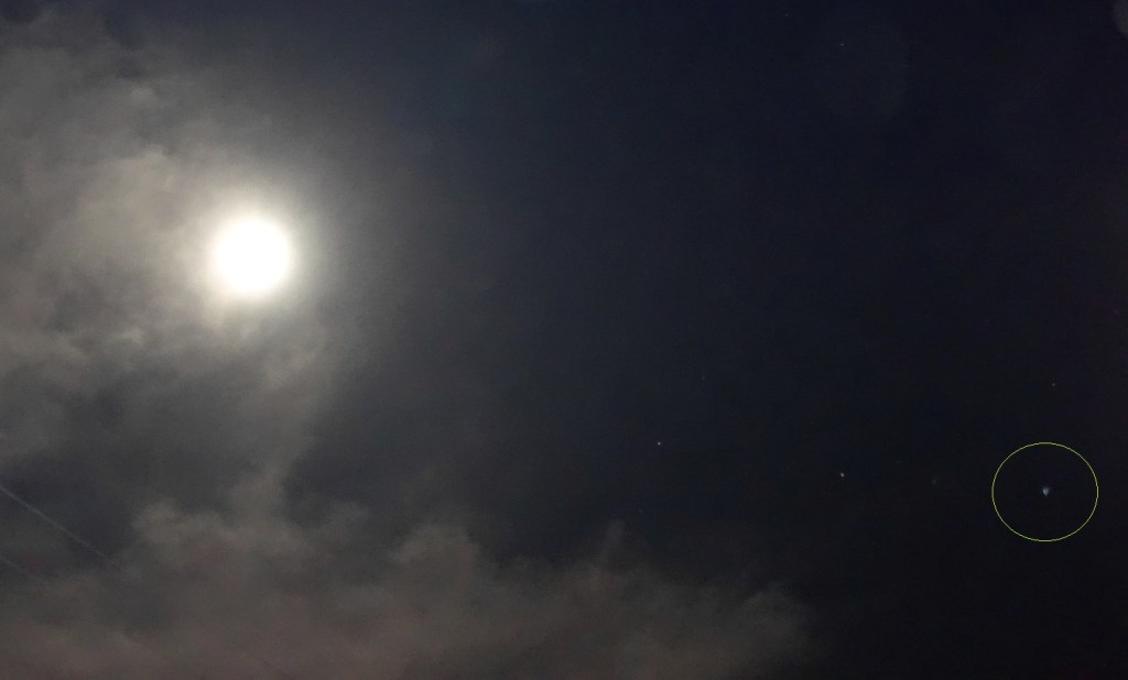 The Full Moon appeared that night with many orbs around it, with the clearest and most detailed orbs appearing where a ship flashed next to Alpha Centauri.