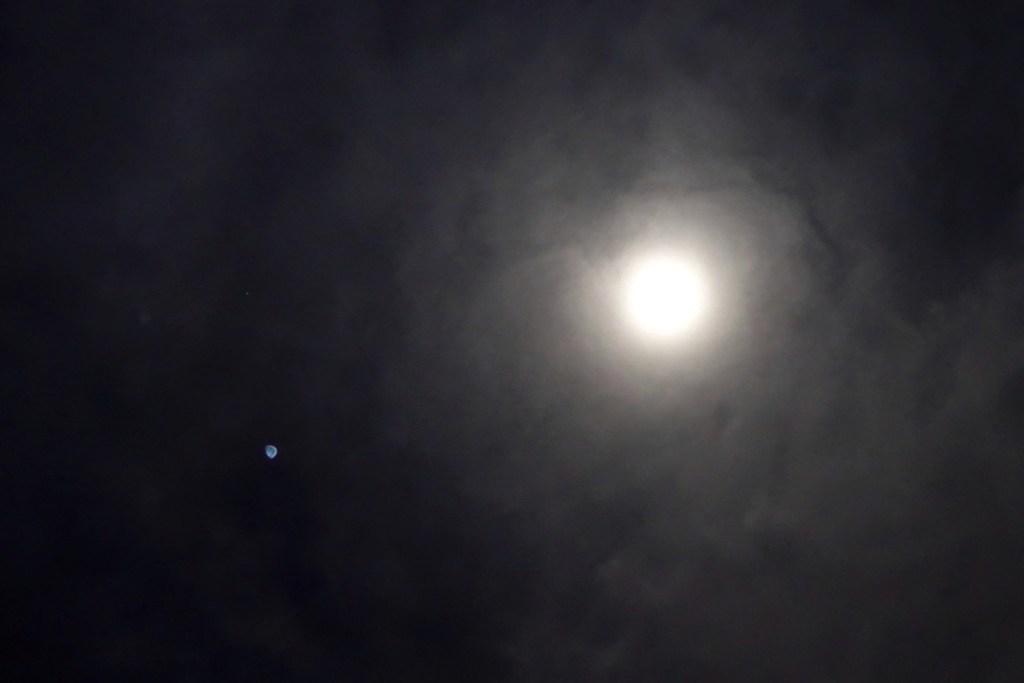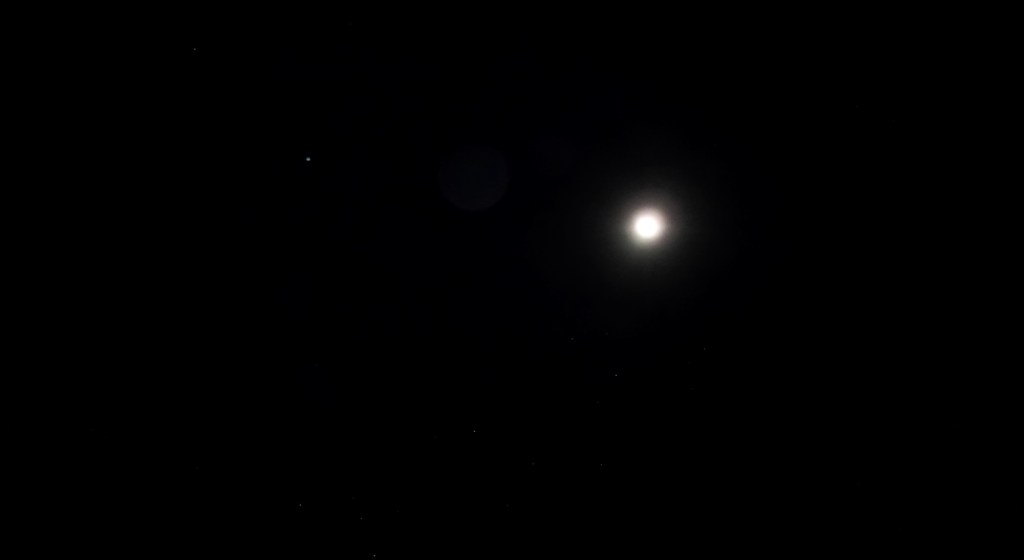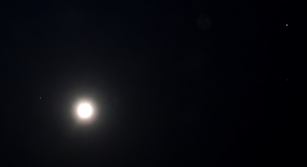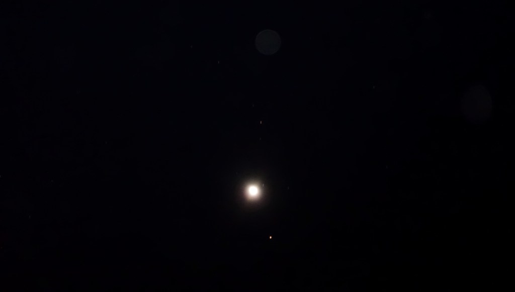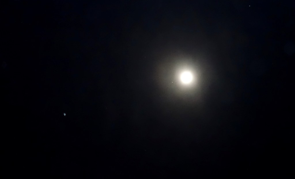 During the Full Moon of December 26-27th, I was seeing numerous tiny flashes and twinkles around the Moon, with the Venusian rose-gold ship of December 22nd appearing again, this time close to the Moon, and about two-thirds visible (its lower right area still cloaked).