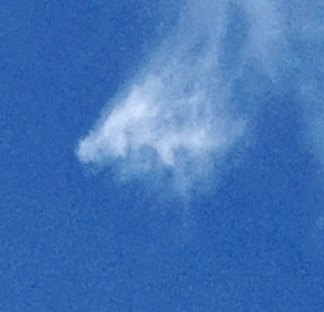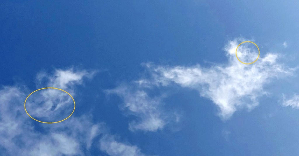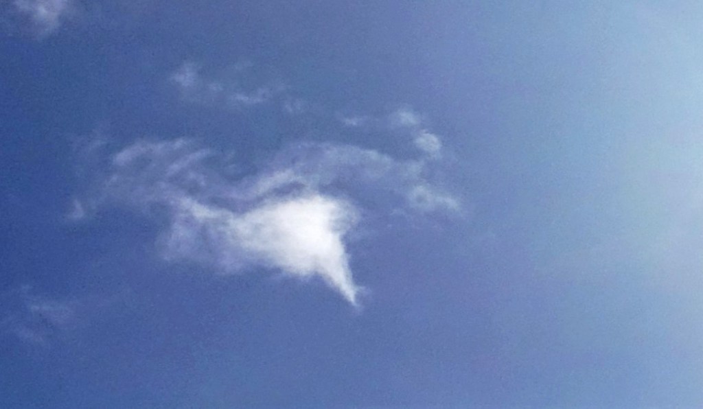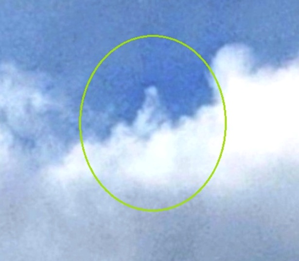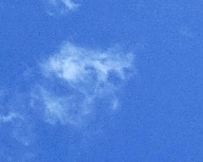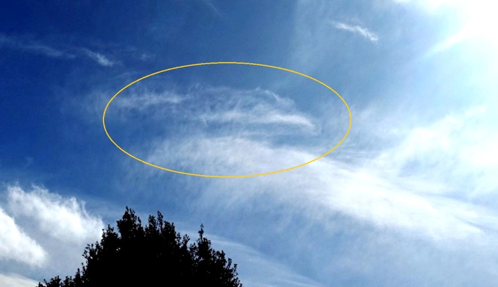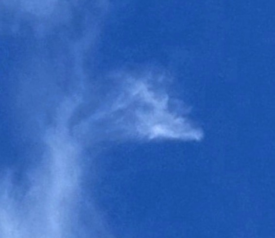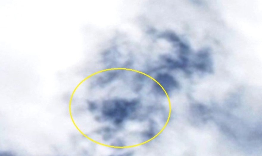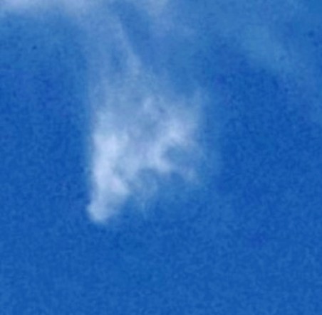 The Terebinth’s ”double diamond” rim outlined in a small cloud again on April 20th. Turned around, the ship frame morphs into a face giving a feline impression (there’s a galactic feline connection with the star Antares, as well as the stars of Lyra and Ara, flowing through the Tara ships) π―