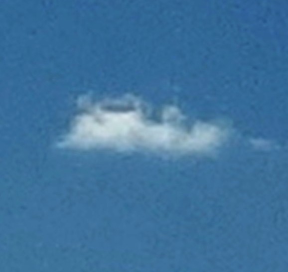 In clouds to the east, a subtle doorway shape formed with the rim of a disc just upper left of it.