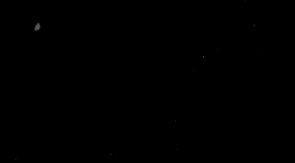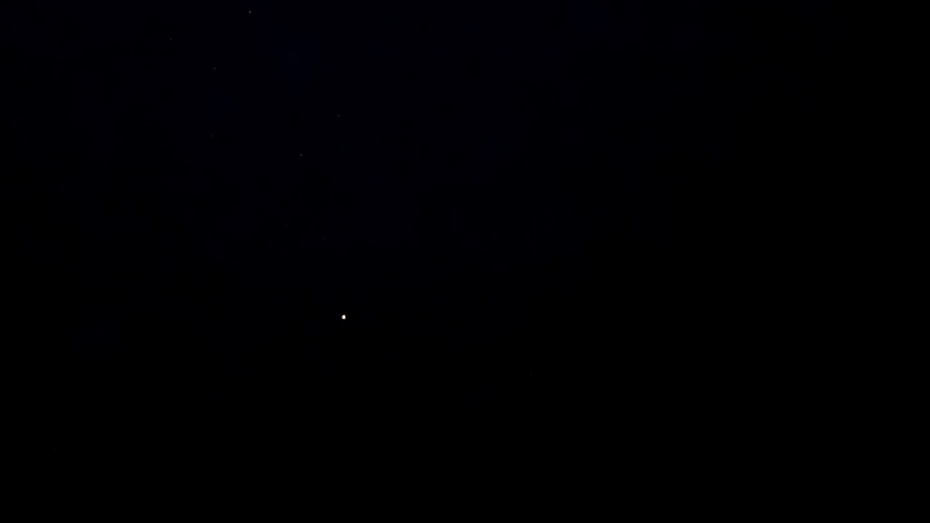 This green orb also appeared above the star Rigel in Orion, with Orion’s Belt in the lower centre frame, then you can see green orbs sweeping up through Orion’s Belt toward Sirius. At the completion of this starry focus, a green ship winked next to Sirius, then all was still.