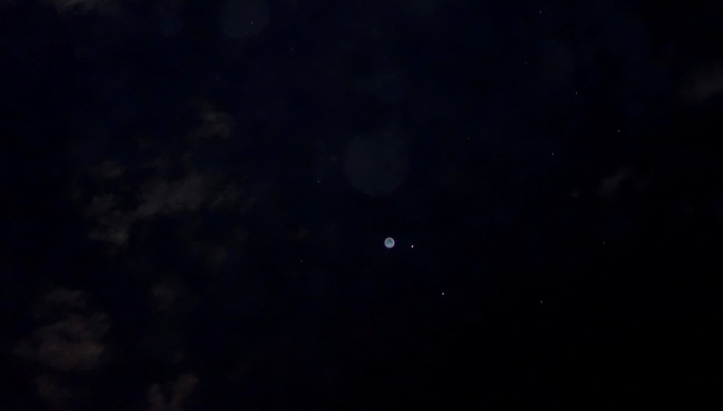With the smaller orb brightening then above Achernar, and becoming more defined, with forms visible within it.