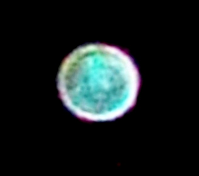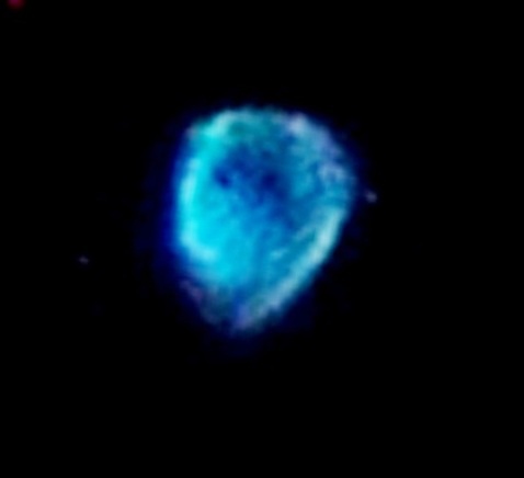Finally, this beautiful, glowing blue orb/ship emanation near the Moon reveals a small blue being with a large head, with a golden sphere floating at their right.