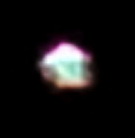 The next night, on October 6th, this lovely light emanation appeared, for a third time, above my house. This ”house-of-light” first appeared last year, and each time with this distinct representation – with a peach-gold floor, emerald green interior, and white roof with a pink rim. Here it is on October 6th, and below are the previous two appearances, on August 18th and 24th 2022.