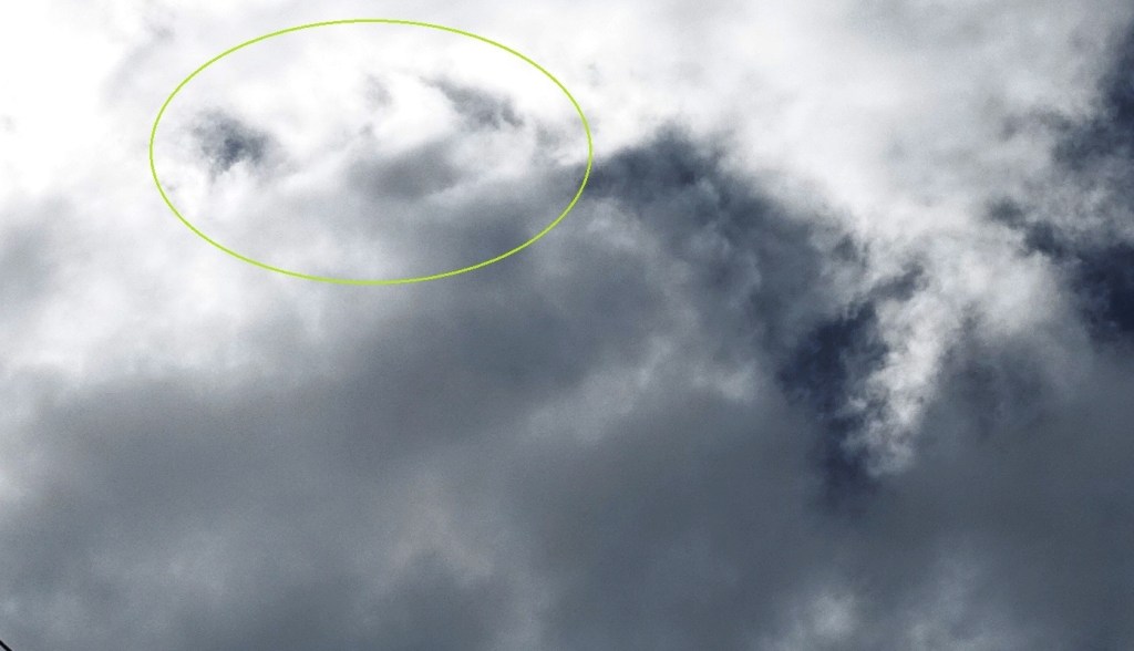 About half an hour later, after integrating the ”download” that came with that ”unfolding of the frame” from the Terebinth, I was called out again, and my focus drawn to a strong magnetic sensation where a distinct portal shape formed within a cloud, again straight overhead.