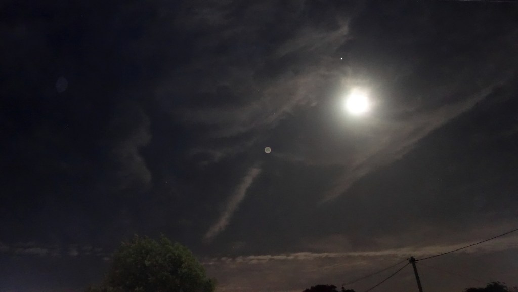 There was a beautiful Venus-Moon conjunction that night, and following its flash from near the Southern Cross, the Terebinth then gave an interior flash, from just below Venus and the Moon, in which they’re showing distinct ”swirly circles” above a floor of white light, in a space within the ship.