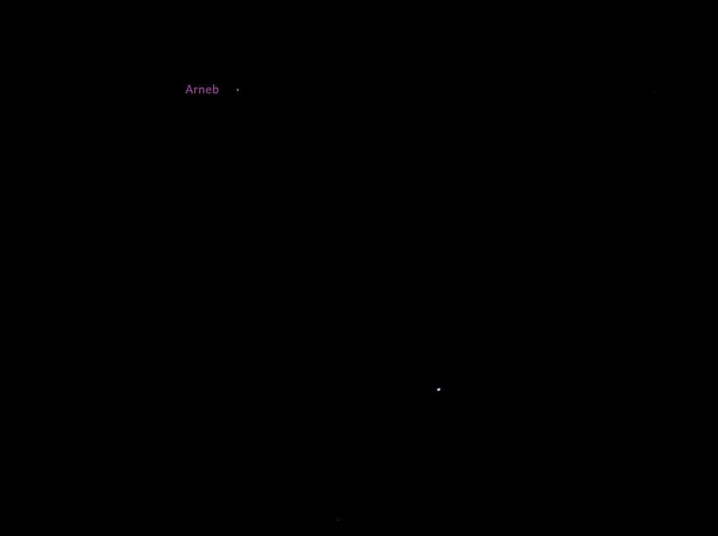 My attention was then called/turned from south to east, to Arneb, alpha star of Lepus (the Hare/Rabbit constellation), and Arnap flashed his ship brilliantly twice just below that star. π°