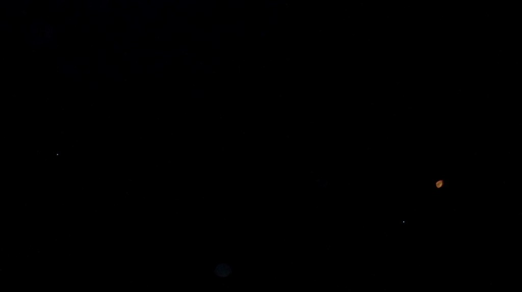 The next night, on December 10th, a ship flashed equidistant on either side of Achernar simultaneously. On enlarging the photo below, the ship on the left has two spheres/pods on its ‘roof’, one gold, one red.