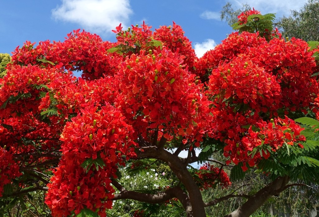 Our higher dimensional soul expressions, families and friends (yours too, dear readers) flow as naturally as breathing through symbolism of all kinds to communicate and signal to aspects of consciousness holding ‘humanly-embodied’ focus in this earthly plane. On December 4th, while driving by the magnificent red blossoming tree pictured below, my focus was drawn straight above it, to where several lightships flashed for a couple of seconds, and higher above them, a clear diamond/double triangle shape was outlined, emerging from a cloud, representing the familiar presence of the Terebinth, which radiates through the Ruby Tara Light.