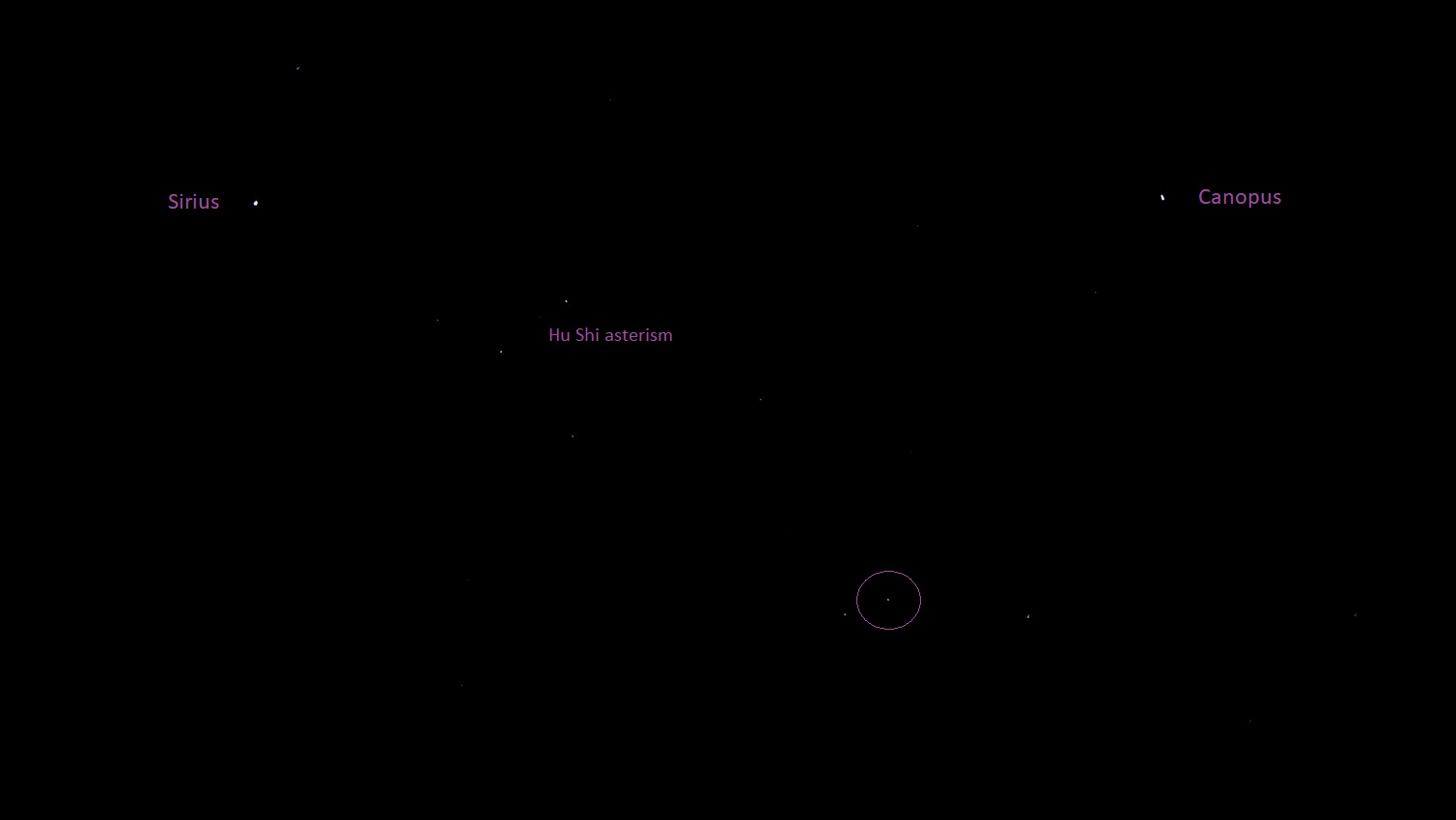 This theme continued around Sirius and Canopus the next night on January 3rd. Firstly, a golden orb flashed between the two bright stars, close to the Hu Shi asterism, with faces visible when enlarged.