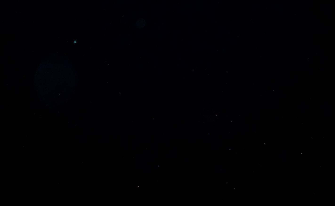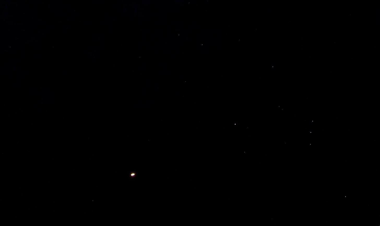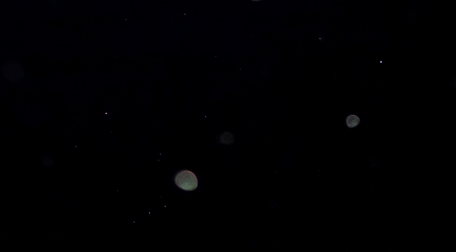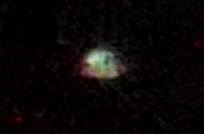 This was followed by a line-up of orbs between Sirius and Canopus, with red orbs between the two stars, and a green orb to the right of Canopus. Enlarged, there are figures visible in the green light emanation, quite clear with the contrast increased.