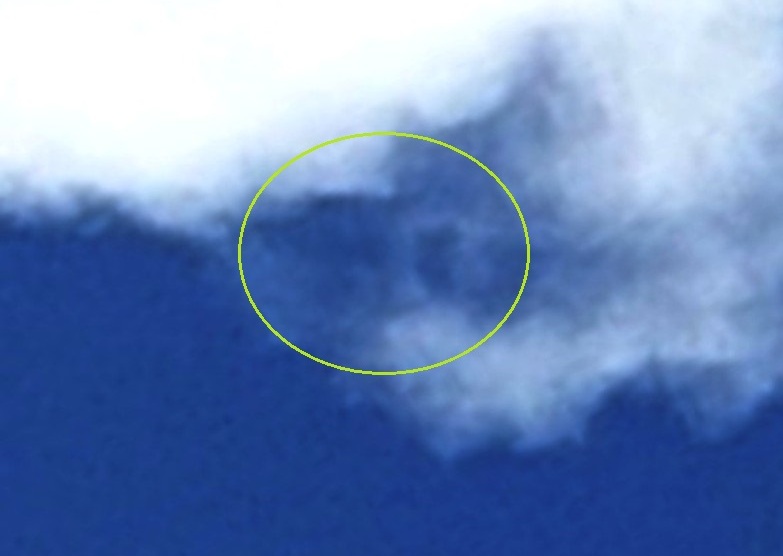 The Terebinth’s ”double diamond” rim outlined in a small cloud again on April 20th. Turned around, the ship frame morphs into a face giving a feline impression (there’s a galactic feline connection with the star Antares, as well as the stars of Lyra and Ara, flowing through the Tara ships) π―