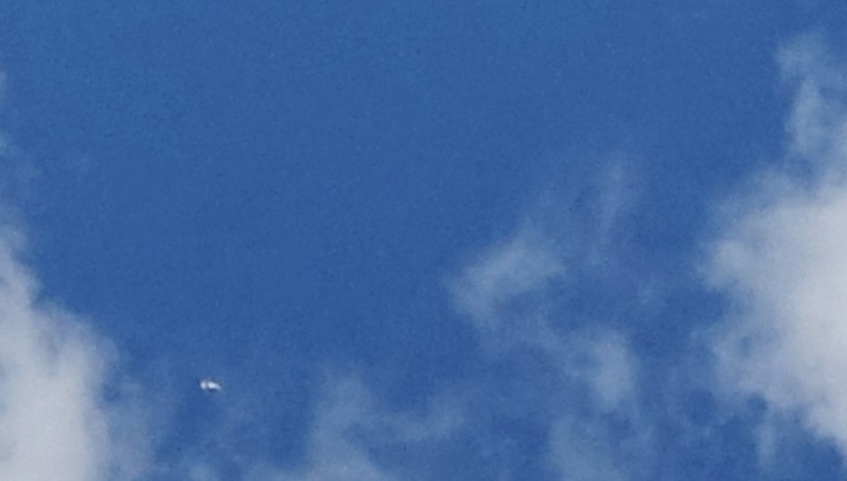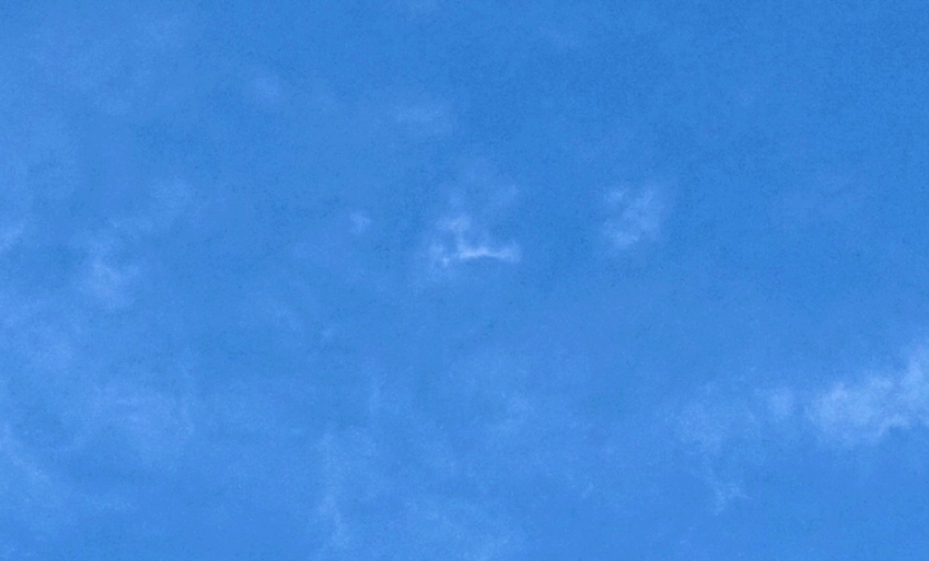 During the morning of January 27th, the sky was busy, firstly with a ship (a golden-white disc again) flashing into view in front of a plane. The plane was visually clear, but in the photo to my surprise looked more like a smudgy dark blue bird shape. Higher overhead, a pair of military jets were passing back and forth, with a helicopter below, it was petty hectic for half an hour or so.