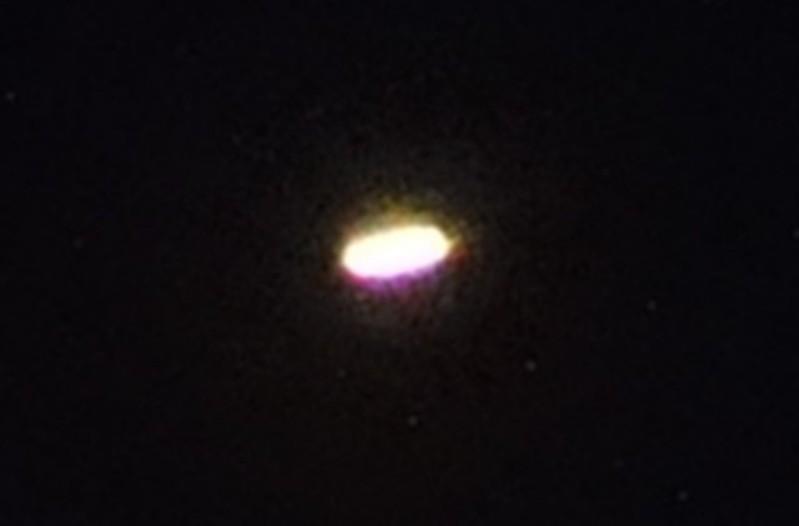 On November 23rd, this shimmery rainbow orb above Achernar was followed by several smaller orbs/ships flashing simultaneously in a shallow arc connected with the two central stars of the triangle.
