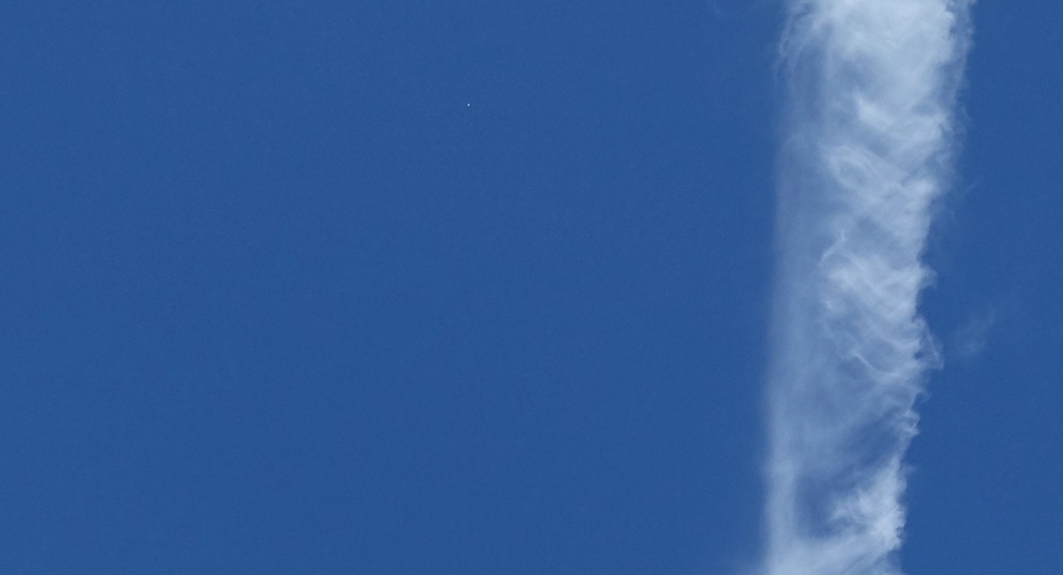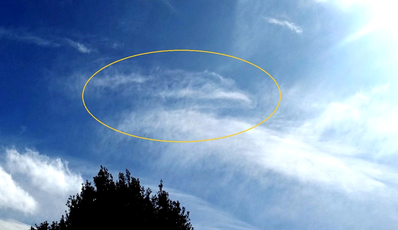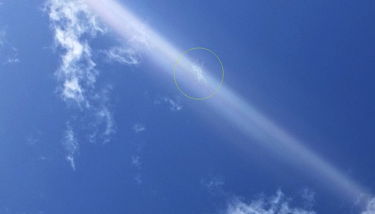 Coming into May 15th, I woke from a ”dream” of streams of energy flowing to the Earth that felt beautiful and supportive, and pathways being cleared to allow them to ”land” in various points/nodes around the planet. Later that day, on being called outside, this unique looking cloud formation banded the sky, with a lightship flashing just near its tip. The ship appeared in several frames, before another extremely bright lightship flashed higher up, moving slowly, across several frames. The spiralling pillar-like cloud then aligned vertically, straight above the aerial on the roof, and a bird plummeted vertically down the cloud spiral before flying away. The sense of energies anchoring felt complete at that moment…and from then, the clouds dissipated and no more ships appeared visibly that day.