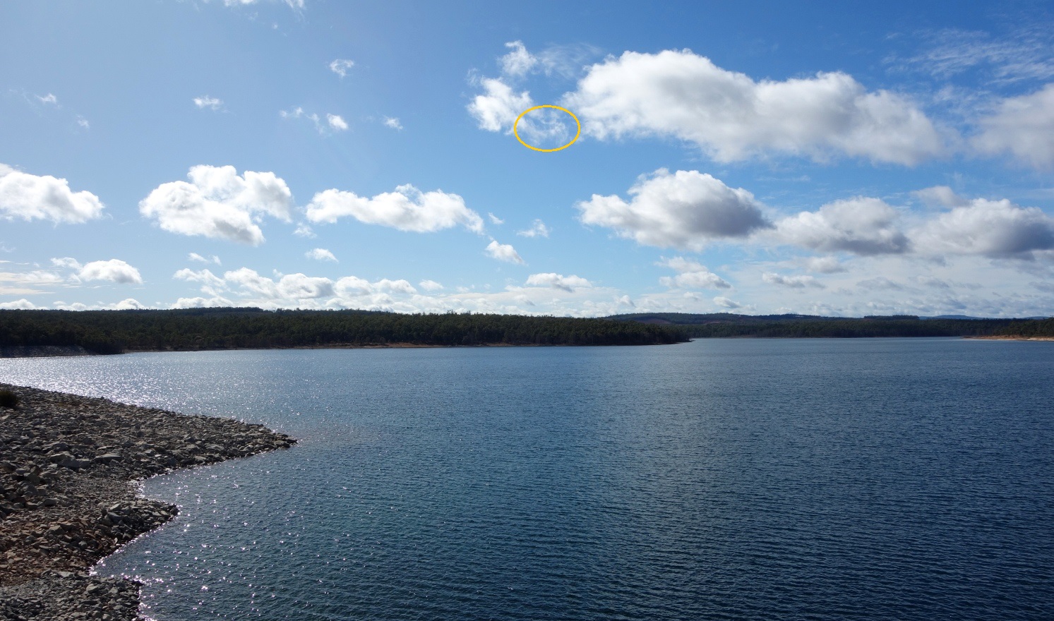 On June 3rd, our focus was inland from Mandurah, still with water, at the North Dandelup Dam. On arriving, several ships flashed briefly, and where one of the ships was stationed, a row of windows formed in clouds over the dam.
