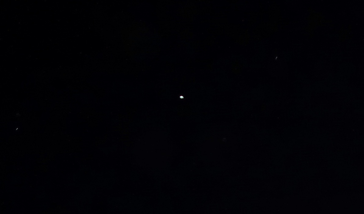 This green orb also appeared above the star Rigel in Orion, with Orion’s Belt in the lower centre frame, then you can see green orbs sweeping up through Orion’s Belt toward Sirius. At the completion of this starry focus, a green ship winked next to Sirius, then all was still.