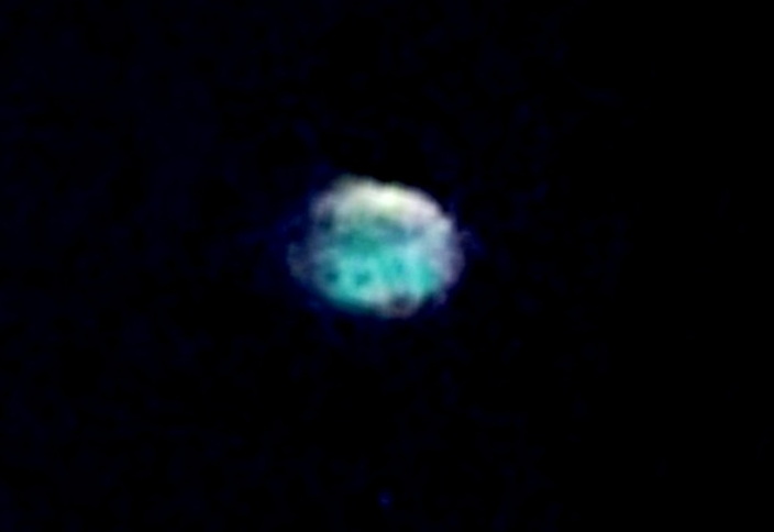 On October 24th, folllowing another brilliant flash from the Lei’hua, this bright orb appeared in alignment with the Moon and Saturn, then resolved into a softly luminous ship-form, with a large green Buddha-like figure (I see/feel this as a ”Green Tara” emanation) haloed in white light defined within it.