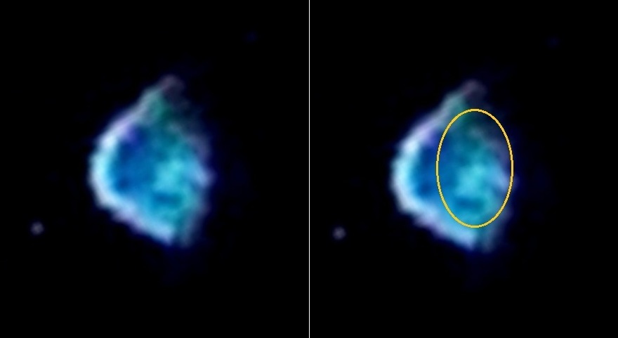 With the smaller orb brightening then above Achernar, and becoming more defined, with forms visible within it.