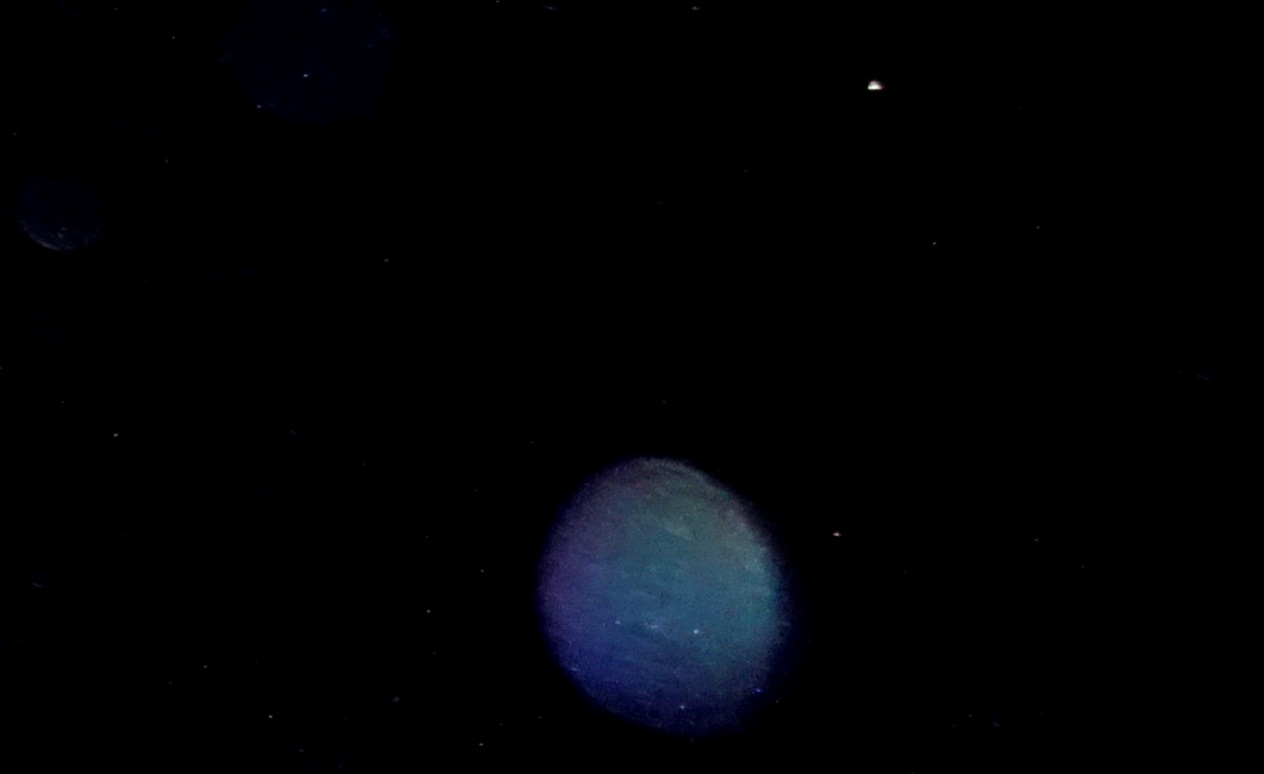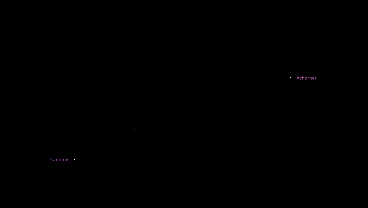 A large planet-like orb then appeared between Achernar and the upper star of the triangle, followed by a gorgeous emanation from a ship, with the distinct shapes of two aqua-green butterflies in its foreground.