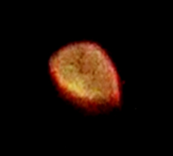 The orb grew larger as it floated closer to Alpha Centauri, with many overlaid forms and faces, with a rosy-red feminine face forming in the left area of the orb.