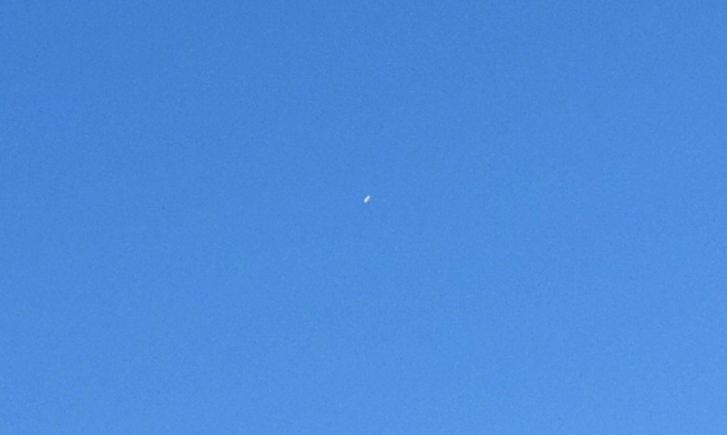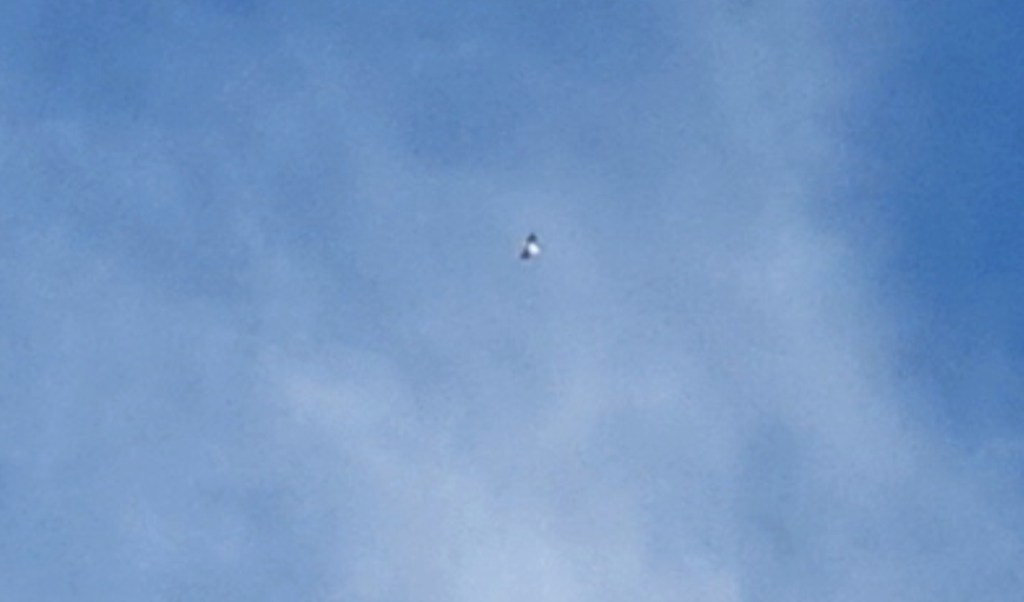 During October, a particular cylindrical ship made several decloaked appearances some of which came through photos, firstly on October 7th. My attention was drawn by a pair of military jets flying around overhead, followed by a black helicopter that circled continuously for half an hour. I saw numerous fast light flashes in the area around the helicopter, and Arnap twinkled his pod ship above it three times, reassuringly, and appearing in several photo frames.