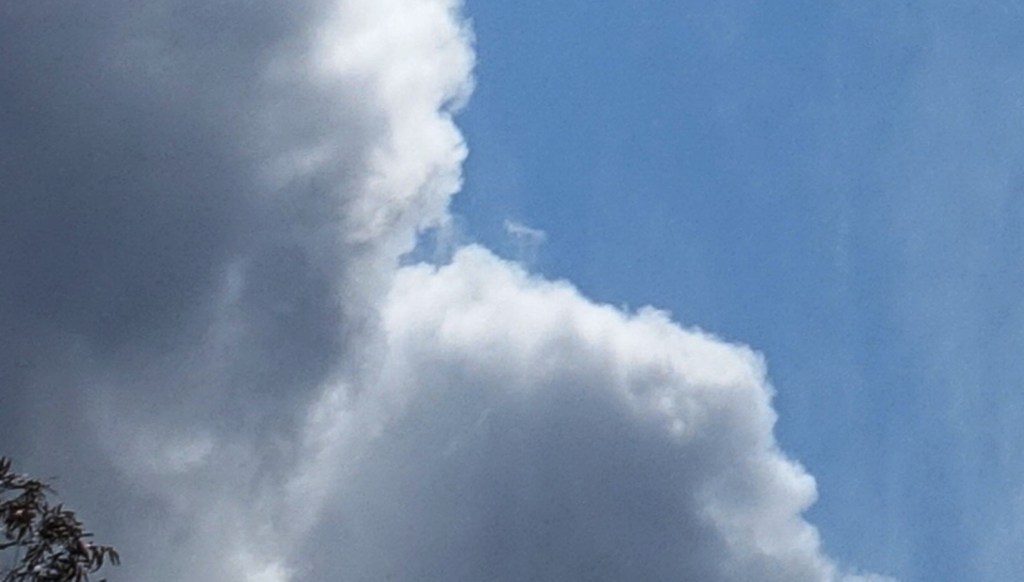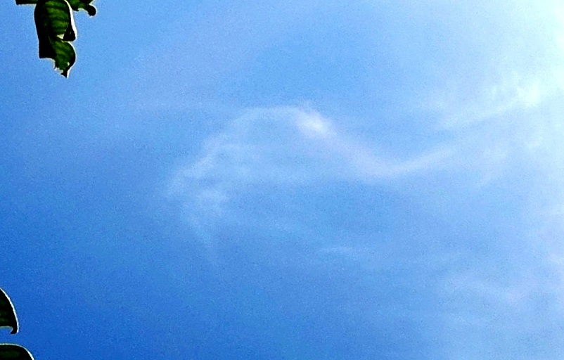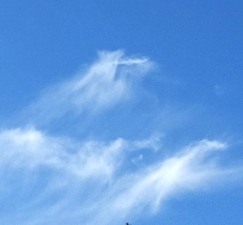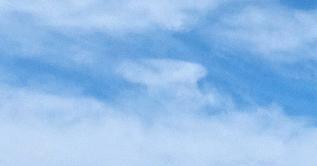 On May 10th, while watching a small white ‘pod ship’, it suddenly became wrapped in a fluffy ball of cloud, with a formation on top of the cloudball that looked like a ‘pixie in a teacup’…quite unusual symbolism!