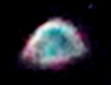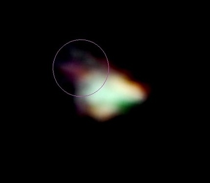 A ship also flashed rapidly a few times, moving above the Bow & Arrow stars. Enlarged, the photos show an orblike form filled with beings.