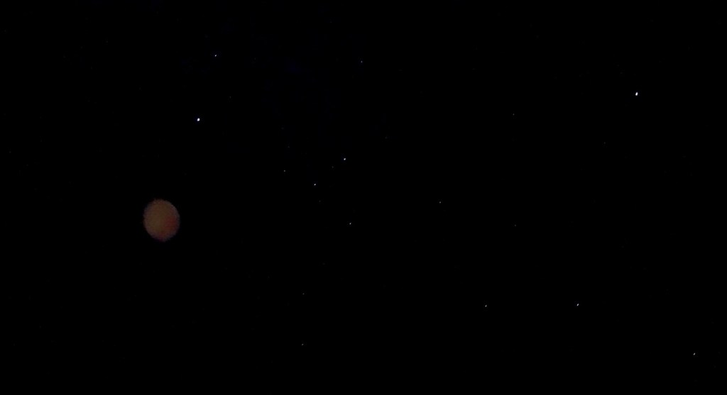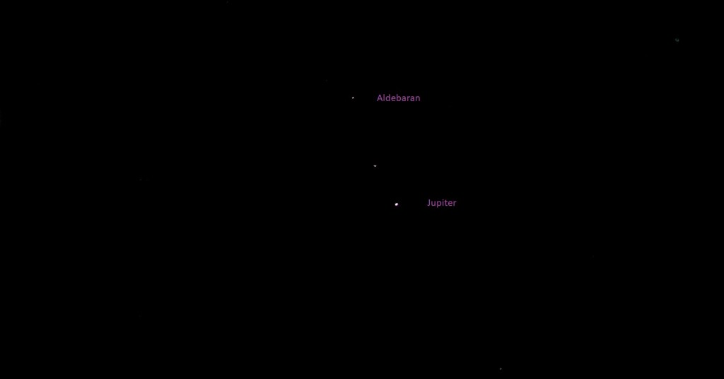 That night, this bright white orb flashed directly below the red star Aldebaran.