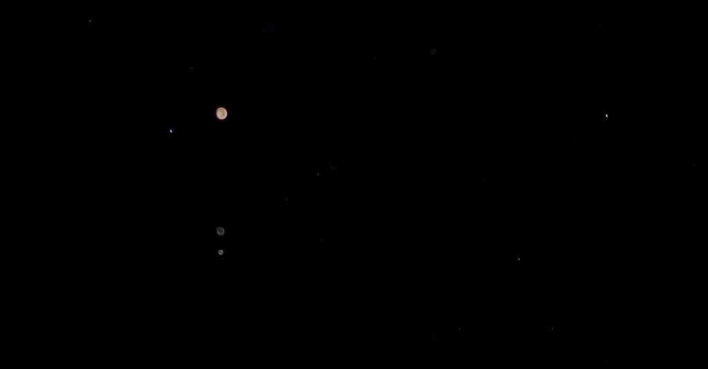 On January 11th, these three orbs appeared in a vertical formation, between Sirius and Wezen, with that same peachy tone at the top. Enlarged, there’s a visible figure with arms outstretched as though for a hug, or waving excitedly. 😊