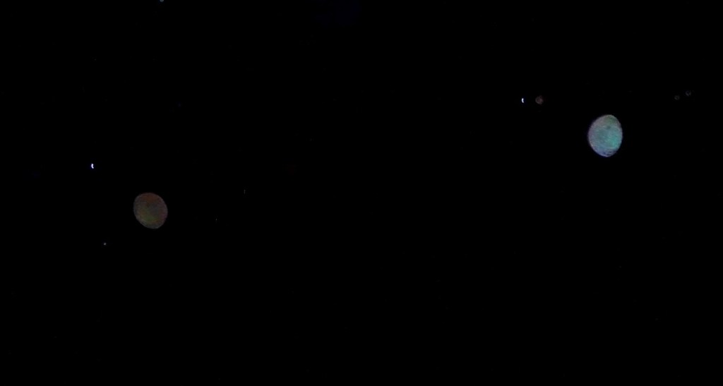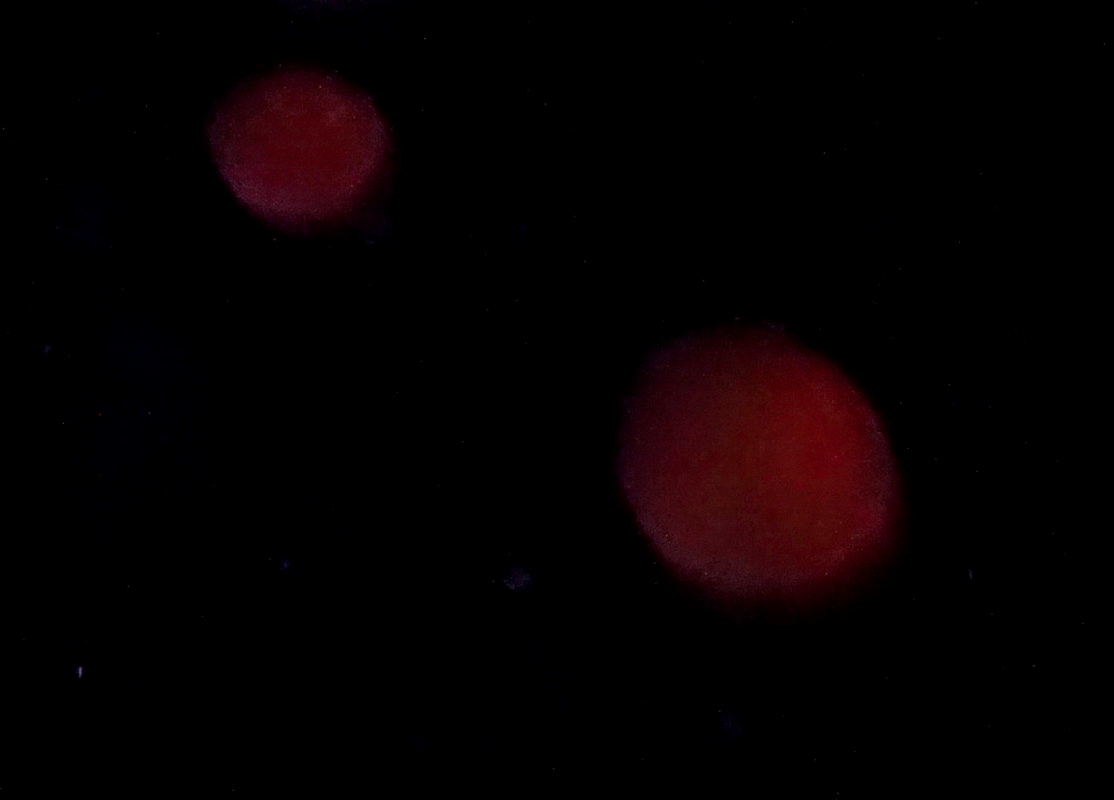 Shifting from the continuous green light flow, multiple orbs in the peach and pink to rose-red spectrum floated around Alpha & Beta Centauri and the Southern Cross on the night of April 8th. Here are some of them, close to the Southern Cross.