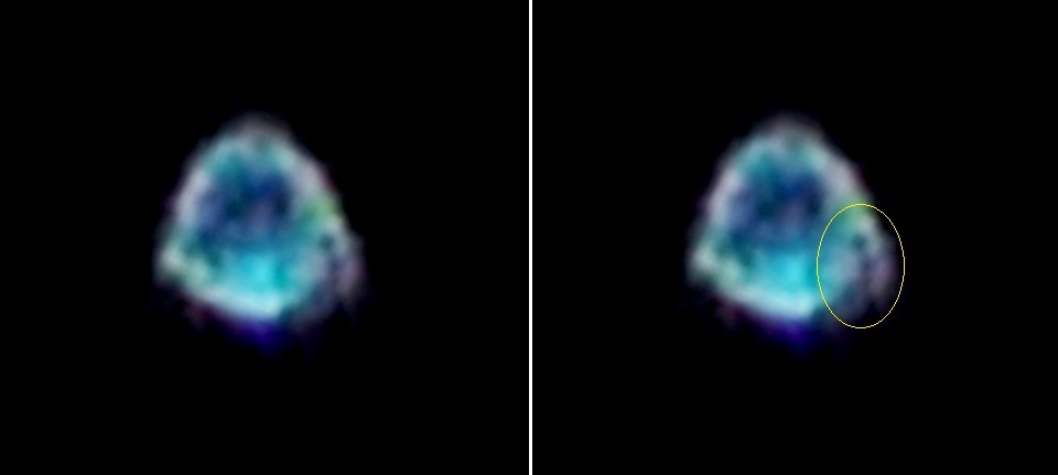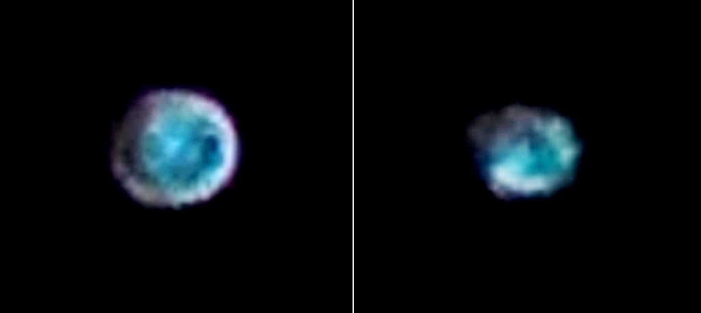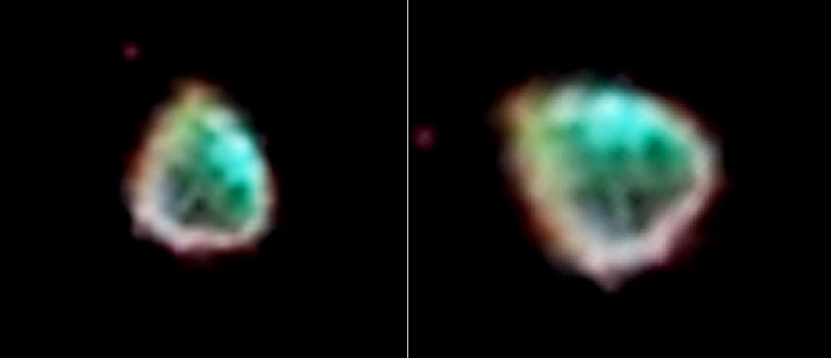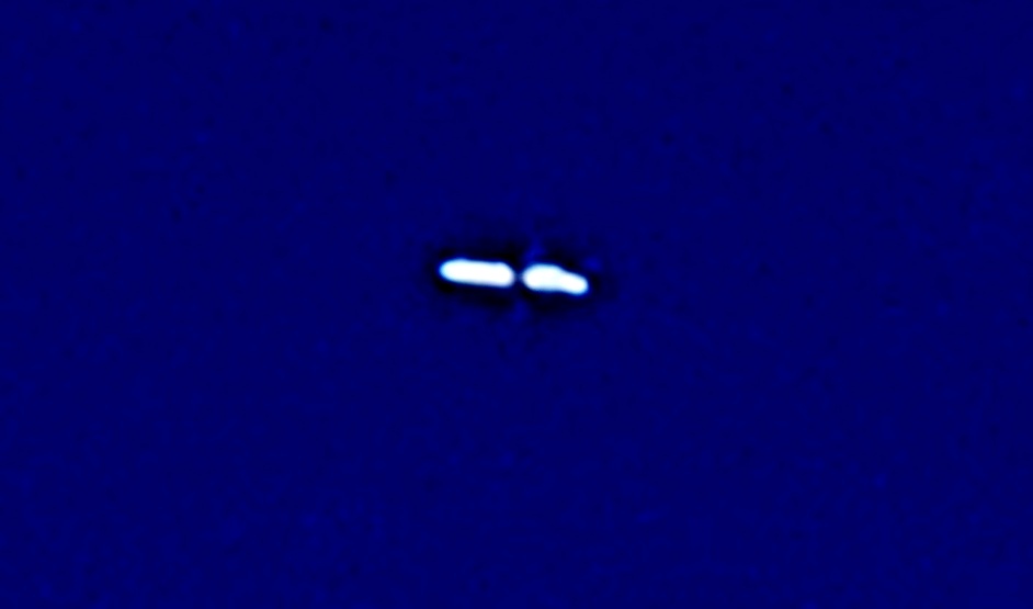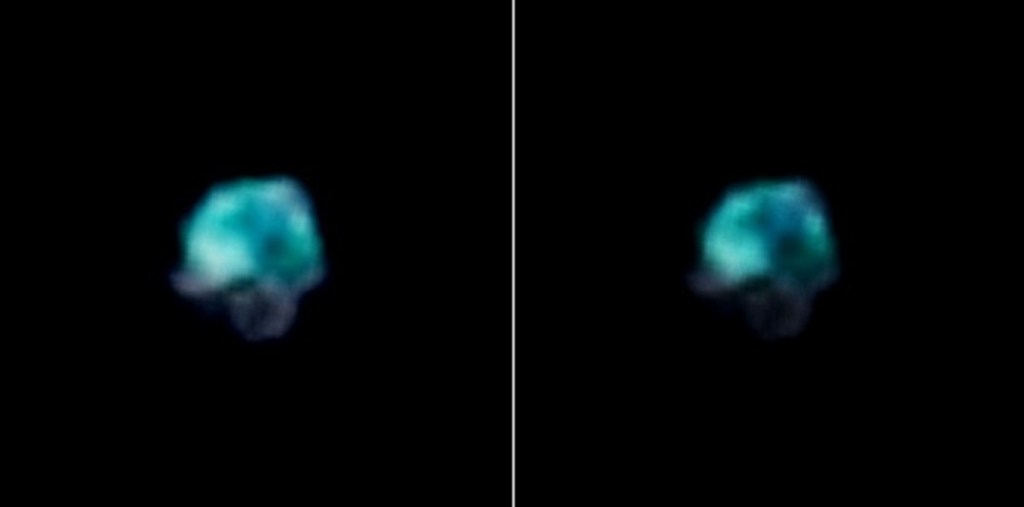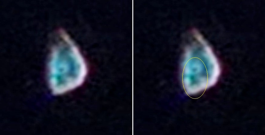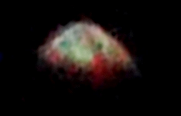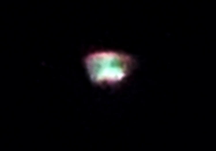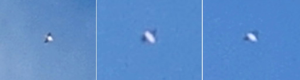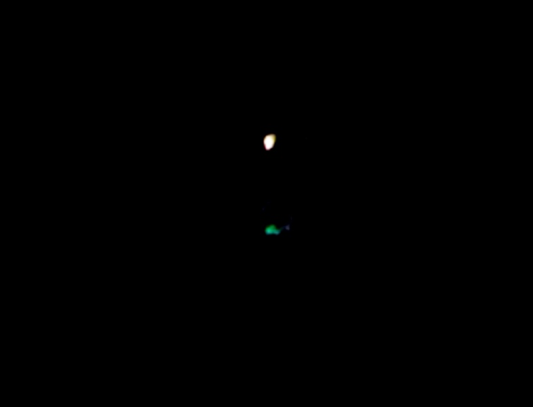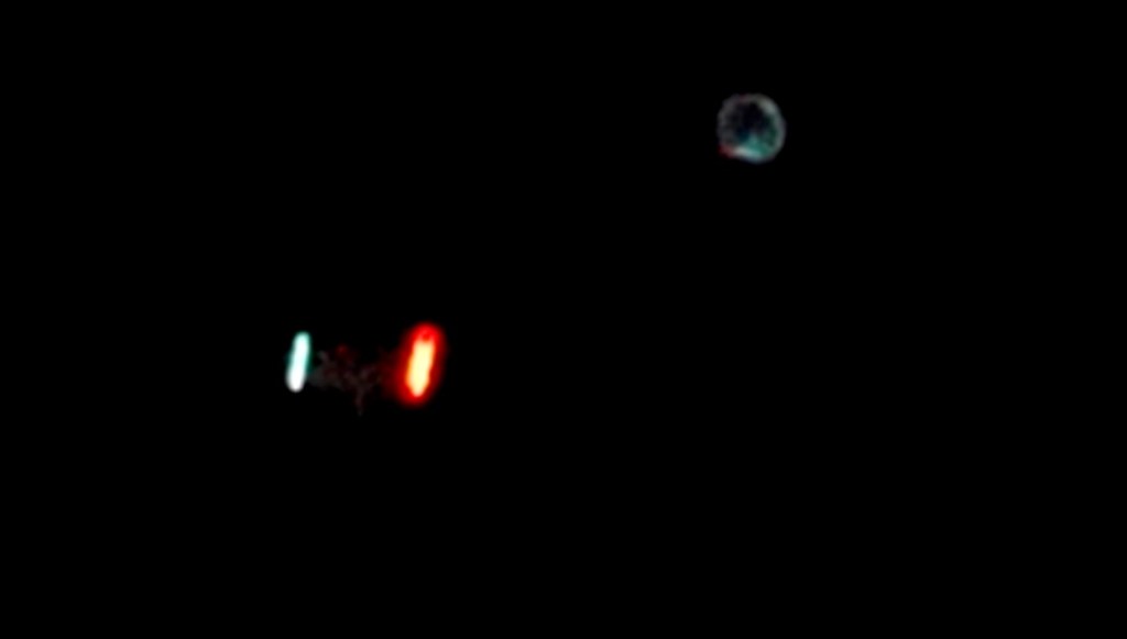 The two small twinkles from this ship were followed by a brilliant white flash, with a distinct form visible in the next photo.