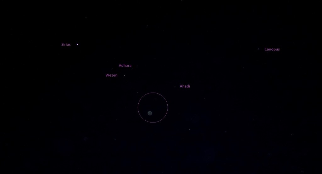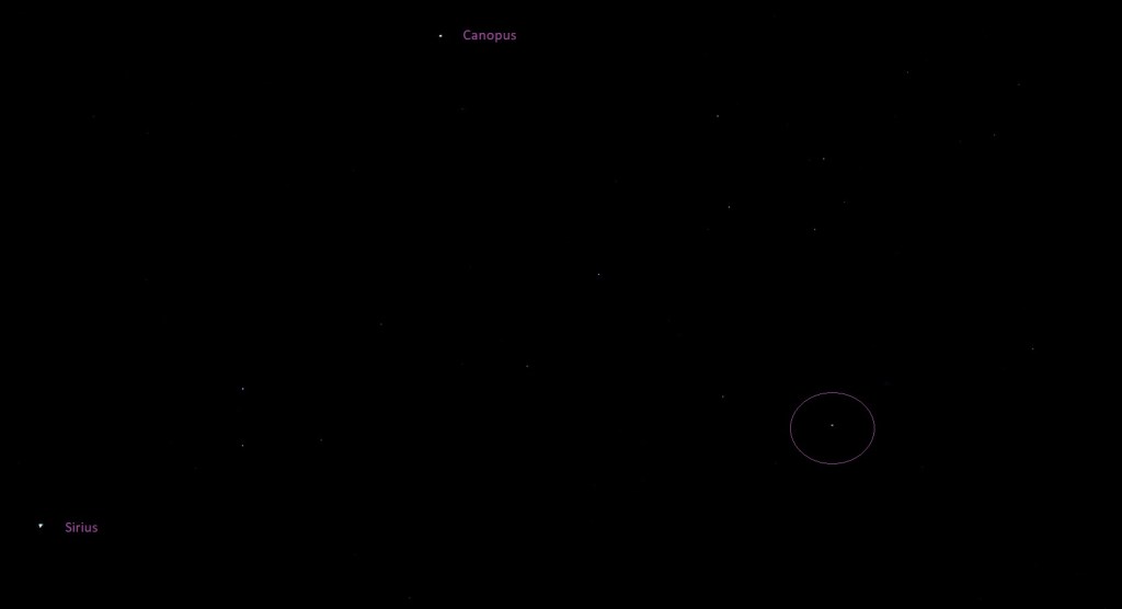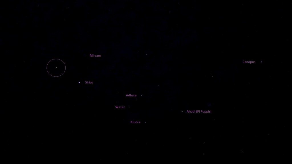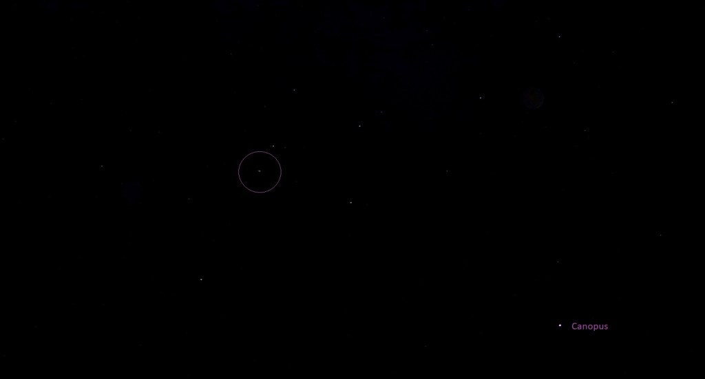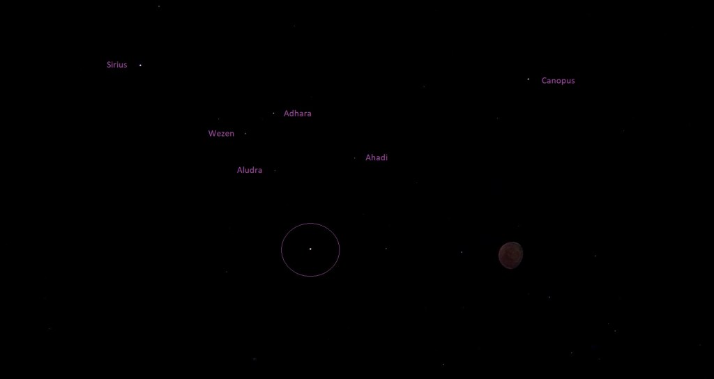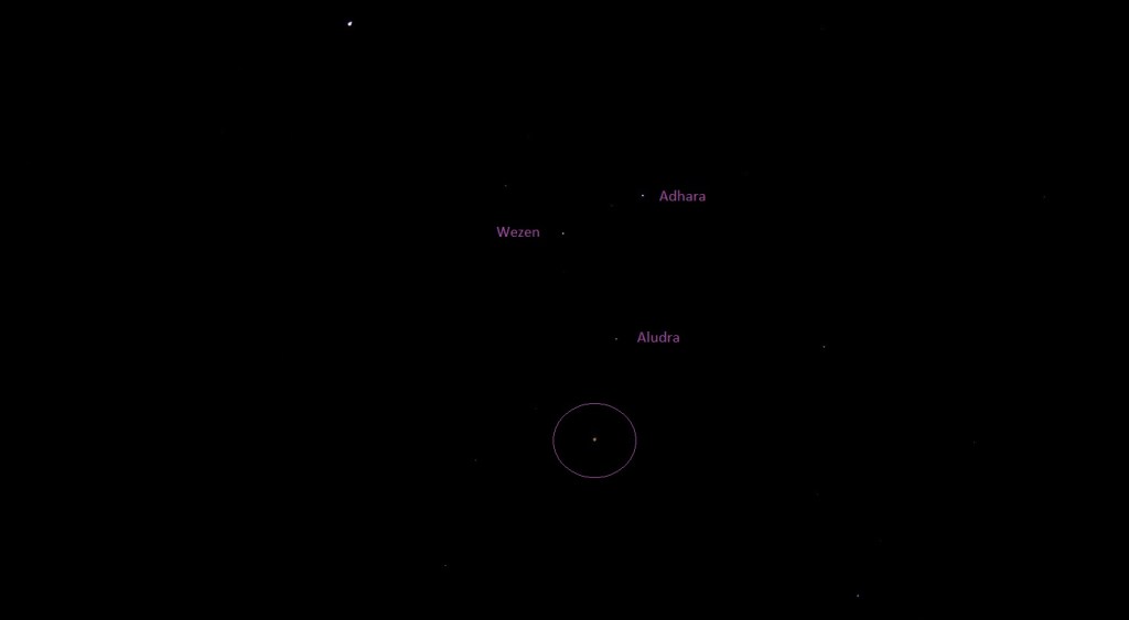Along with a familiar red orb, floating now inside the kite-like frame of the Hu Shi stars, towards Pi Puppis.