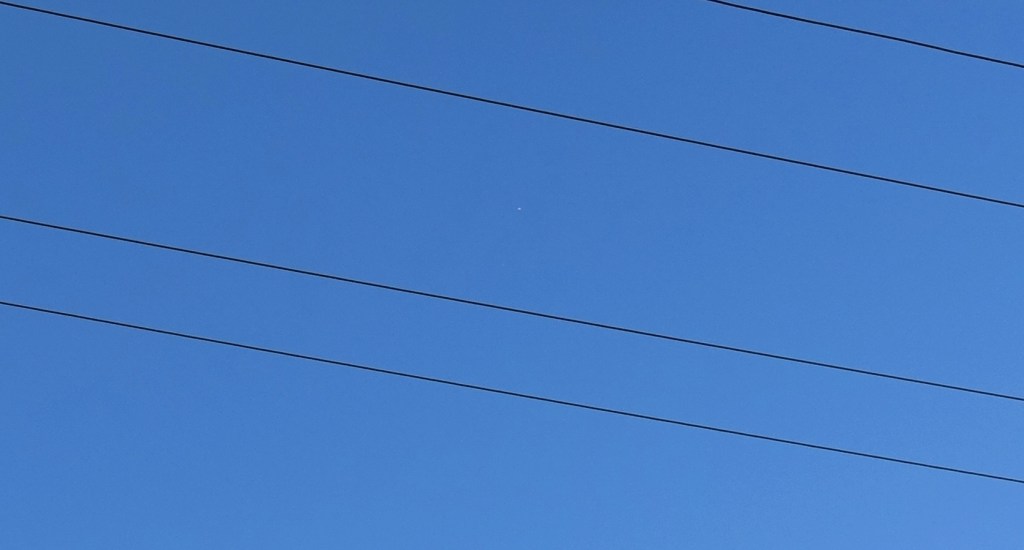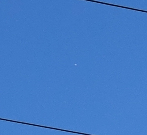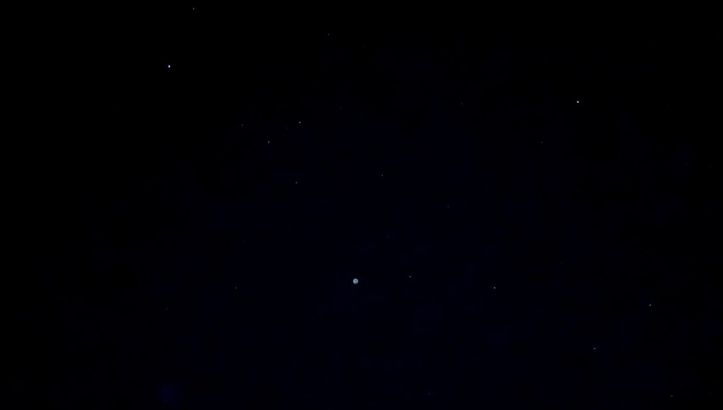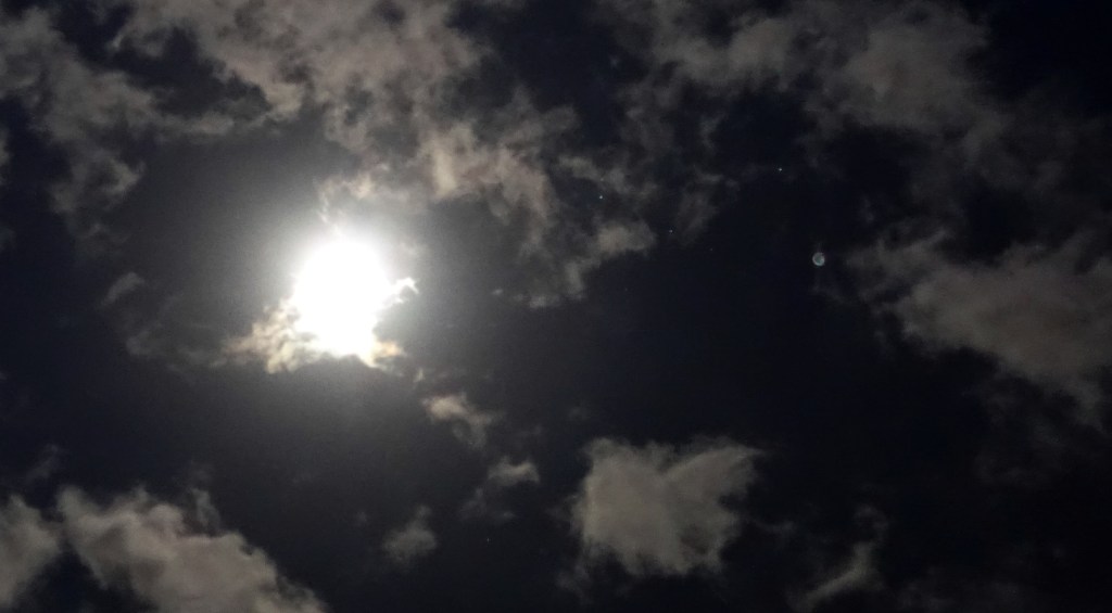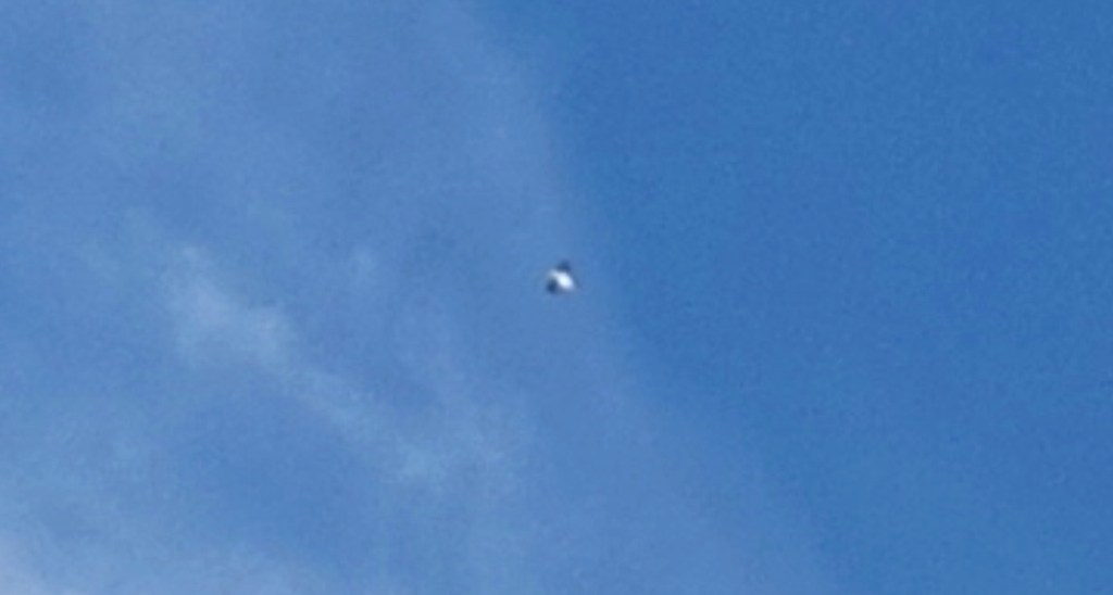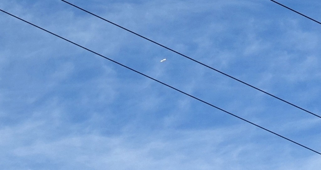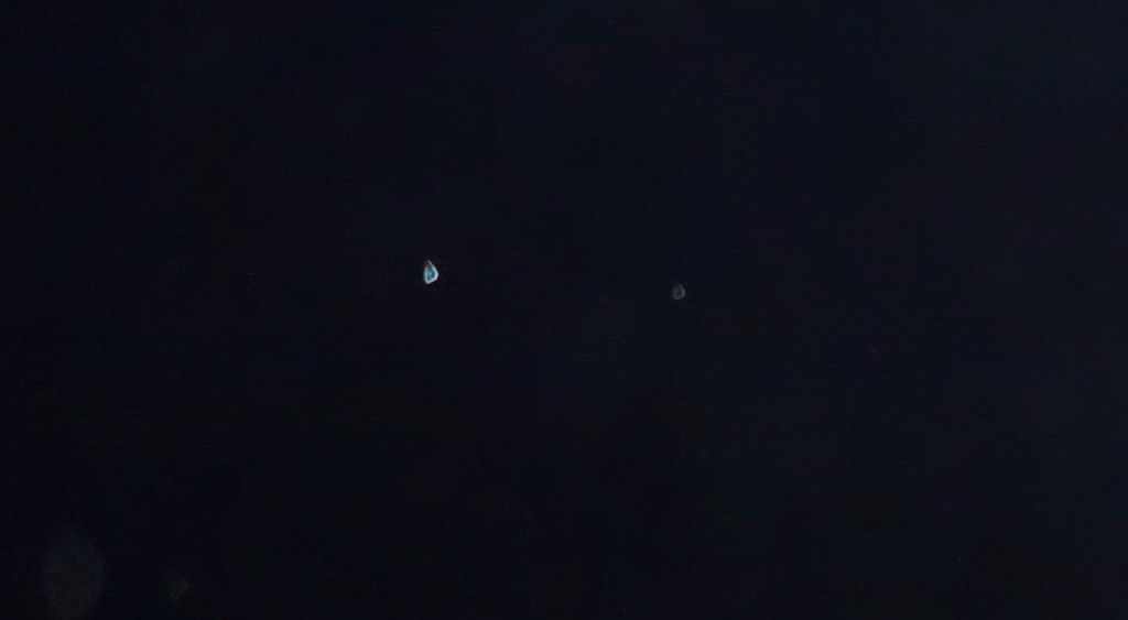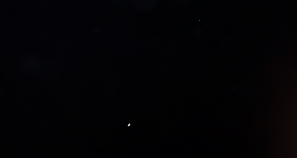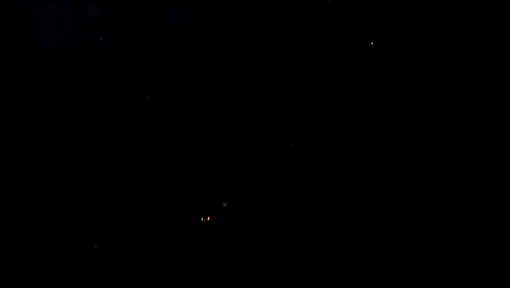 The ship was a brilliant silver-white, intensely bright. Here’s one of the photos with the mid-tones reduced, to give an idea of how visually bright it was to the eye, like a burning magnesium strip, yet somehow not uncomfortable to look at.😊