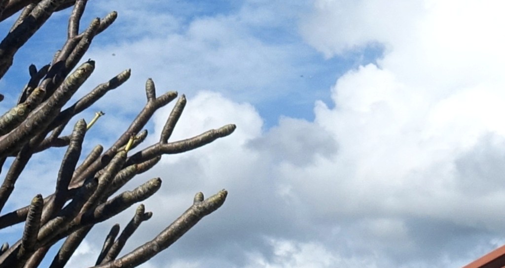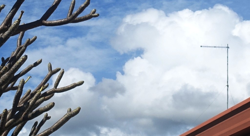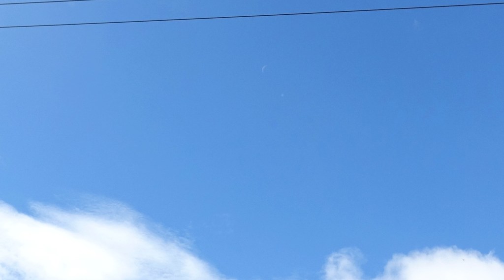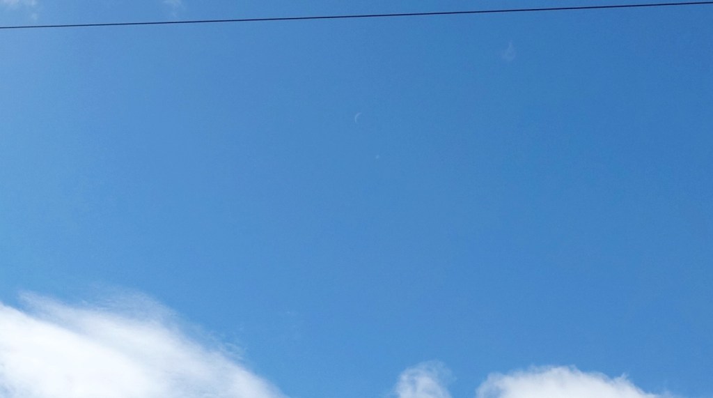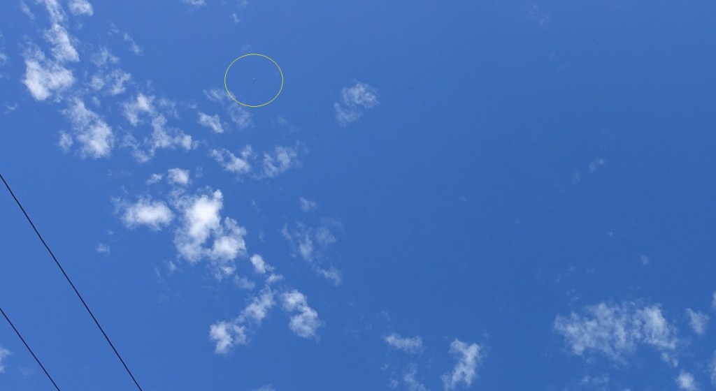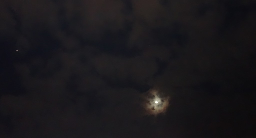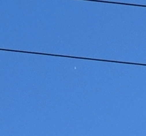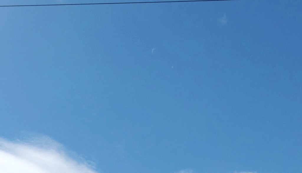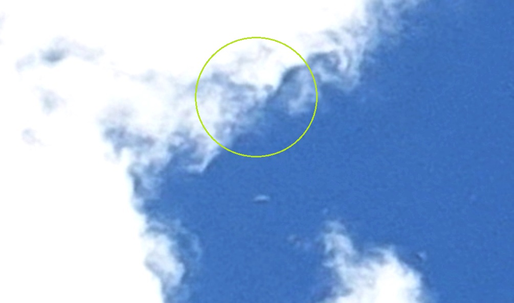 During the afternoon of March 14th, my attention was drawn to the young Moon, visible where a gap opened in the clouded sky, and Arnap flashed his pod ship right beside the Moon, then remained hovering around it with his pod semi-decloaked, partially visible (I’ve circled it in a couple of the photos below when he dipped down from the Moon toward the clouds), and giving one bright flash as he headed higher up and recloaked. He had been in my dream before waking that morning, along with two close, very dear star brothers Ka’ree and Alione, and I heard/felt greetings from them, on board the pod with Arnap that day.