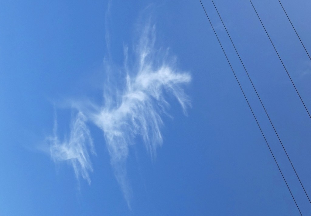 Close by, a chevron shape formed in a cloud, with a ‘cloud stream’ flowing down from it like a waterfall.