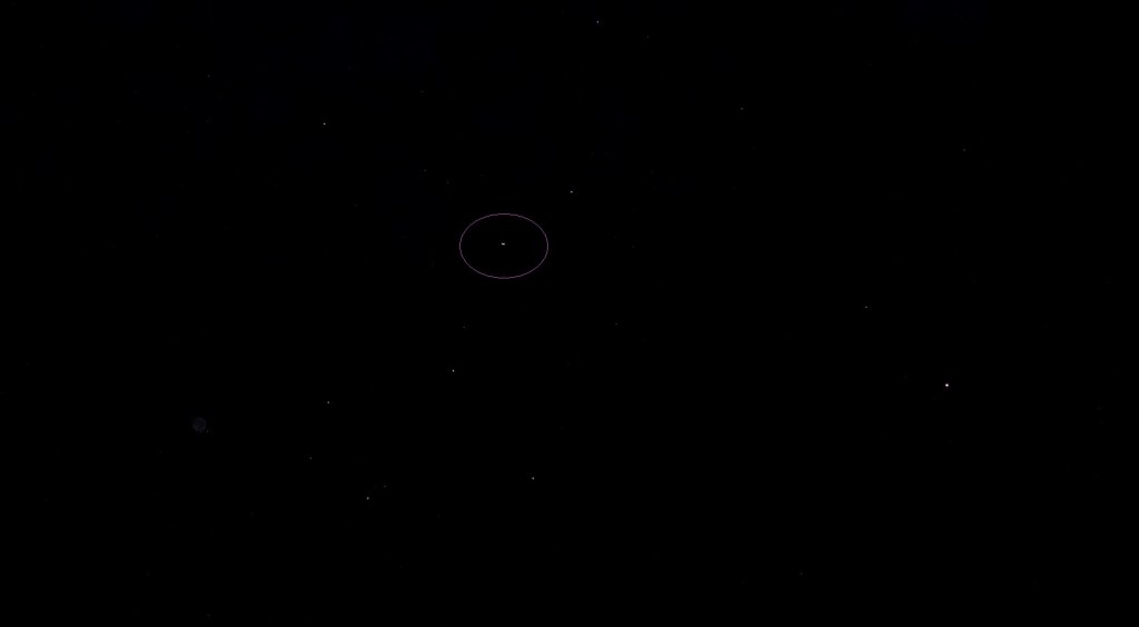A white pearl-like orb then appeared right next to Pi Puppis, inside the asterism, like a planet or moon.
