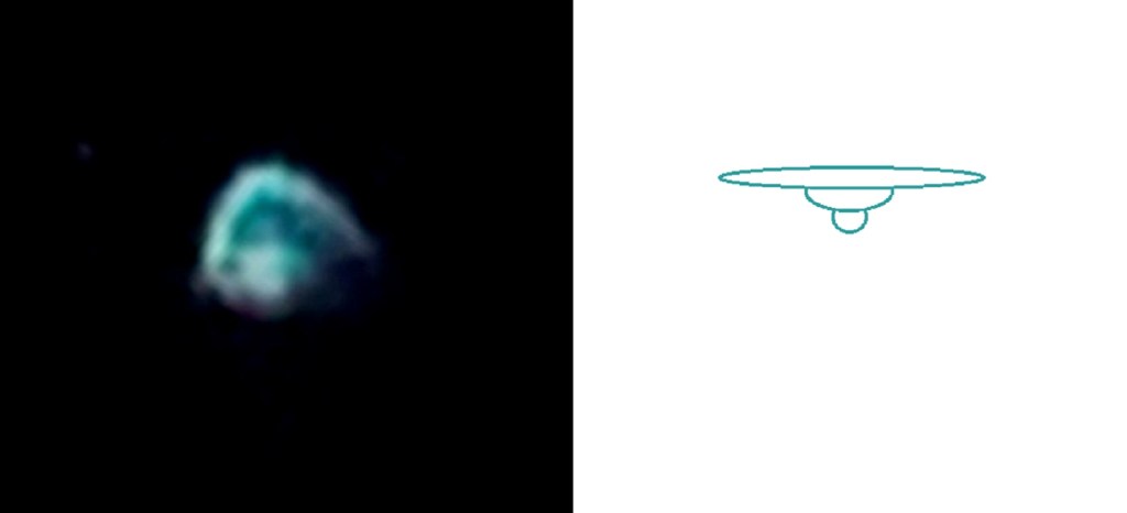 On the night of May 18th, ship and orb activity was focused around the Southern Cross/Crux constellation and an asterism known as the False Cross, after a few subtle flashes near Canopus. This one shows a somewhat ‘bell-shaped’ emanation (which you can see the relevance of below), with one figure clearly formed at the right, with arm raised as though waving.