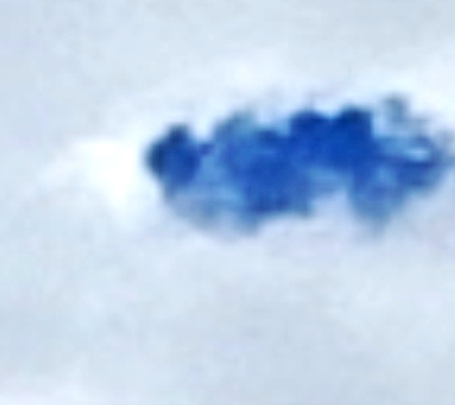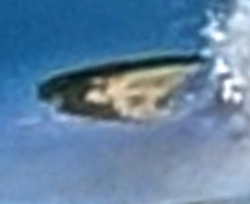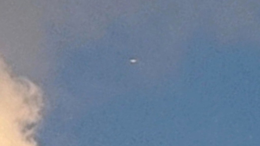 This same ship decloaked briefly over the house every day through to May 27th. On that day, toward sunset it appeared just above the only brightly lit cloud in the sky, where it can be seen in a slightly different ‘format’, still as a bright white ovoid/egg shaped craft, but with the deep blue wings ‘wrapped’ as a ring around the body of the ship.