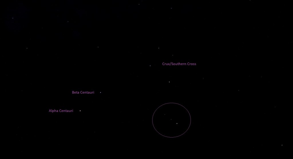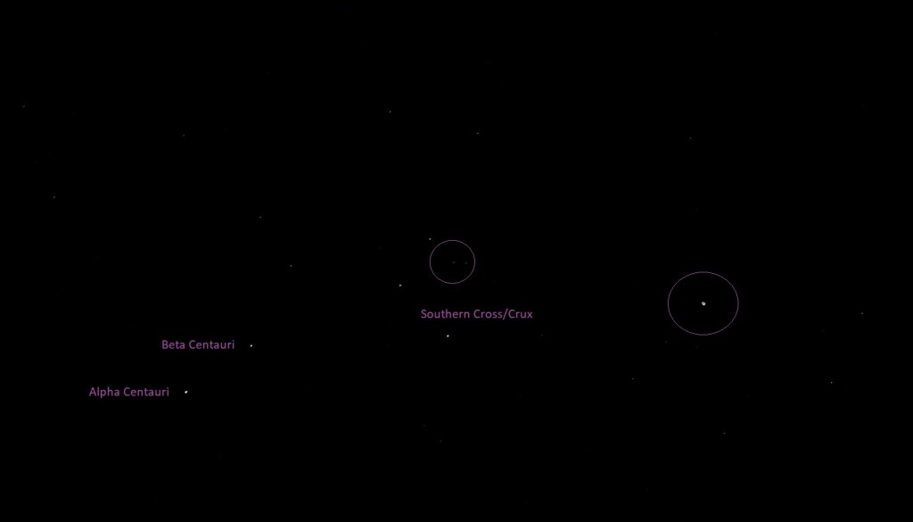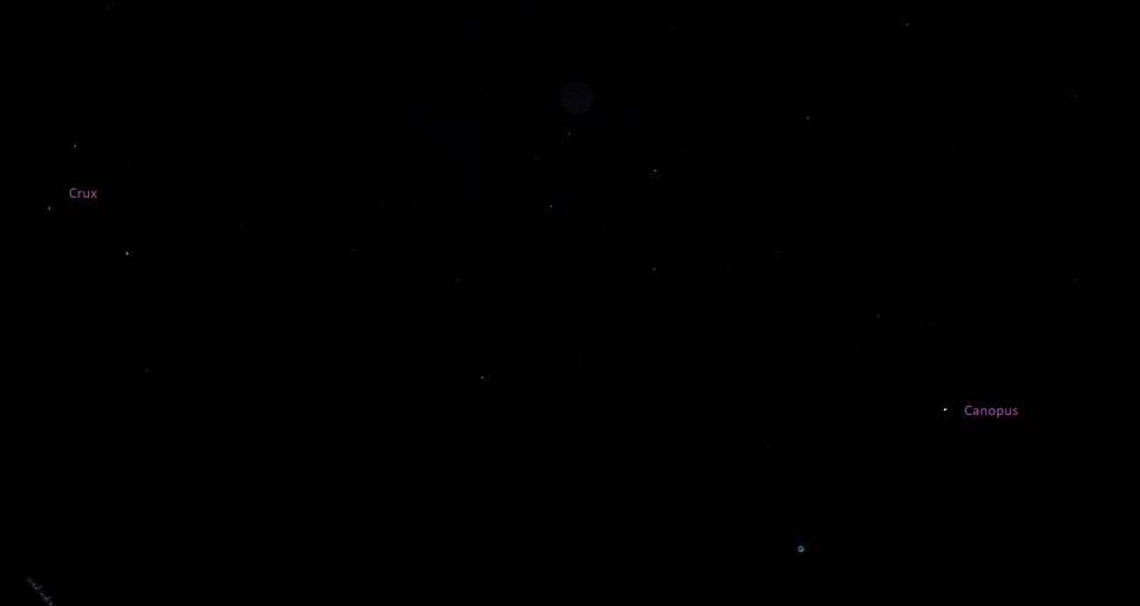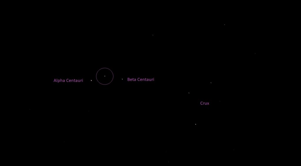 On July 16th, a lightship flew along the alignment of Crux and Alpha Centauri, and pulsed very brightly in the centre between Alpha and Beta Centauri.
