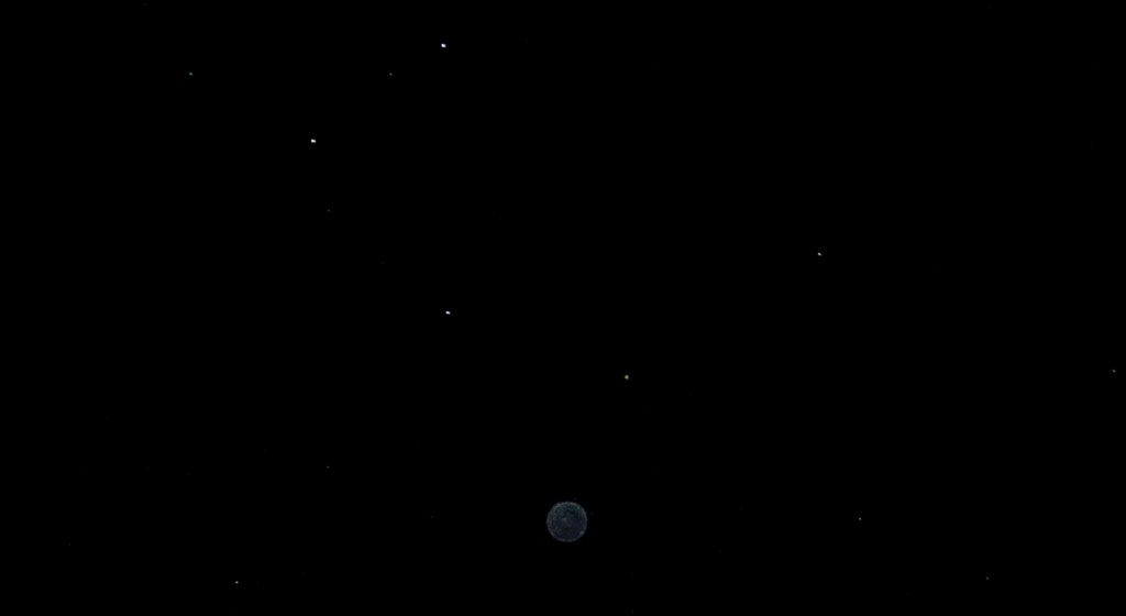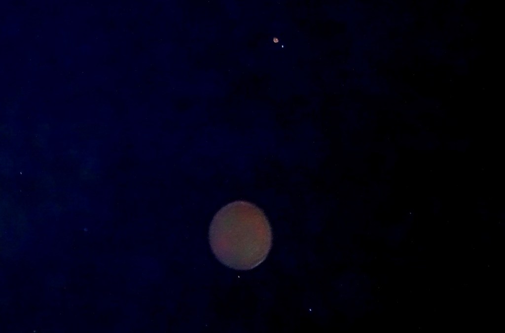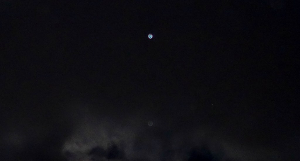 The Lei’hua then flashed three times at an angle to the Moon and Venus, as a bright golden light (circled below.), her domed disc form visible, with golden light flowing downward.