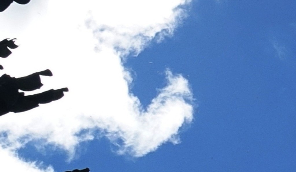 Flowing through this ongoing pyramid and pillar theme, on April 12th some beautiful symbolism around a ship presence played out in the clouds, firstly with a vertical cloud pillar rising toward a particular cloud, in which a tiny gap/window opened, within which the rim of a ship formed at the upper right, over a ‘frame’ type shape. As the ship melted away, a pyramid on a supporting frame formed in the left area of the little cloud window.