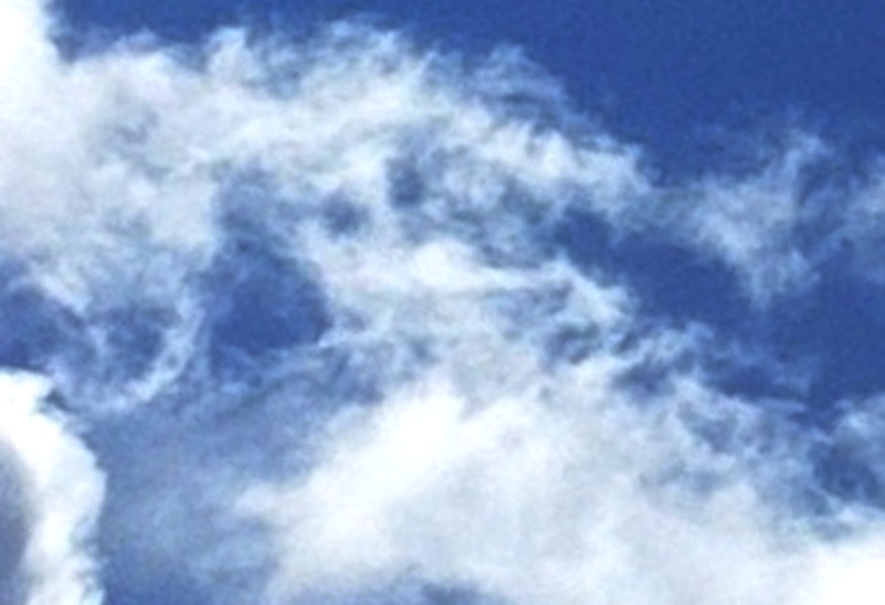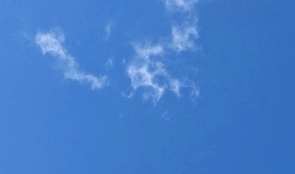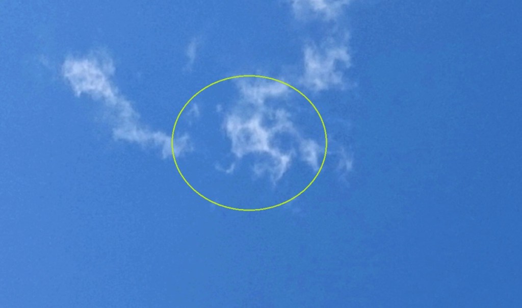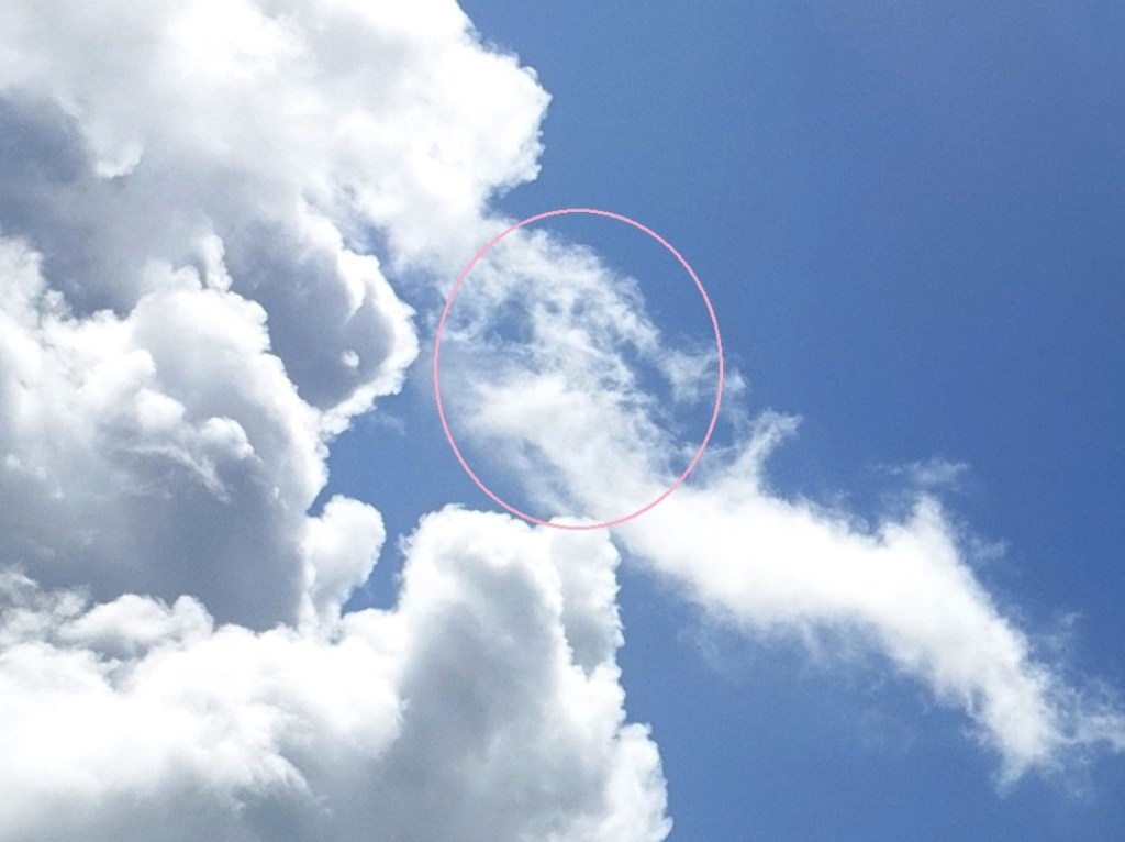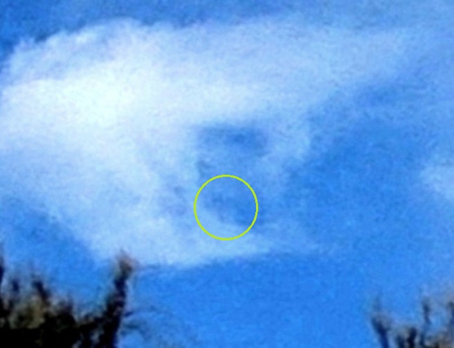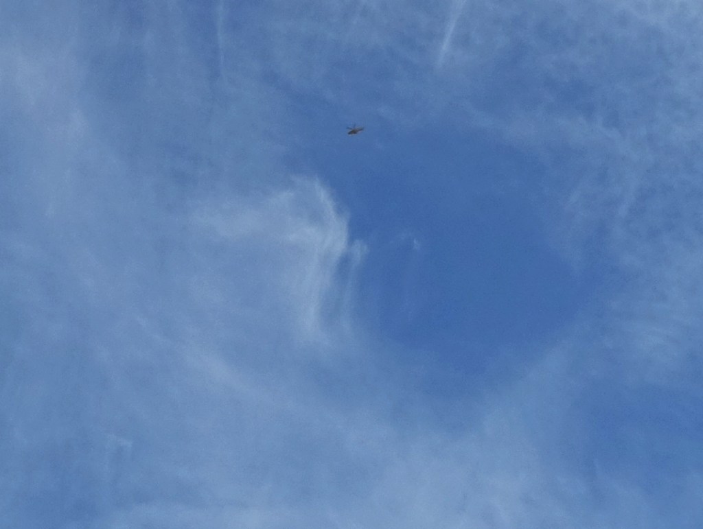 This beautiful clear diamond shape formed in clouds on July 31st, around a central ‘eye’, and another lovely clear in the upper section of the diamond.