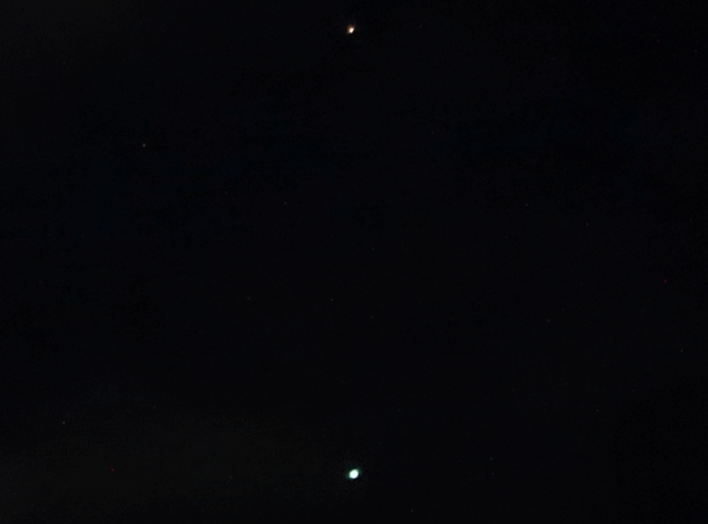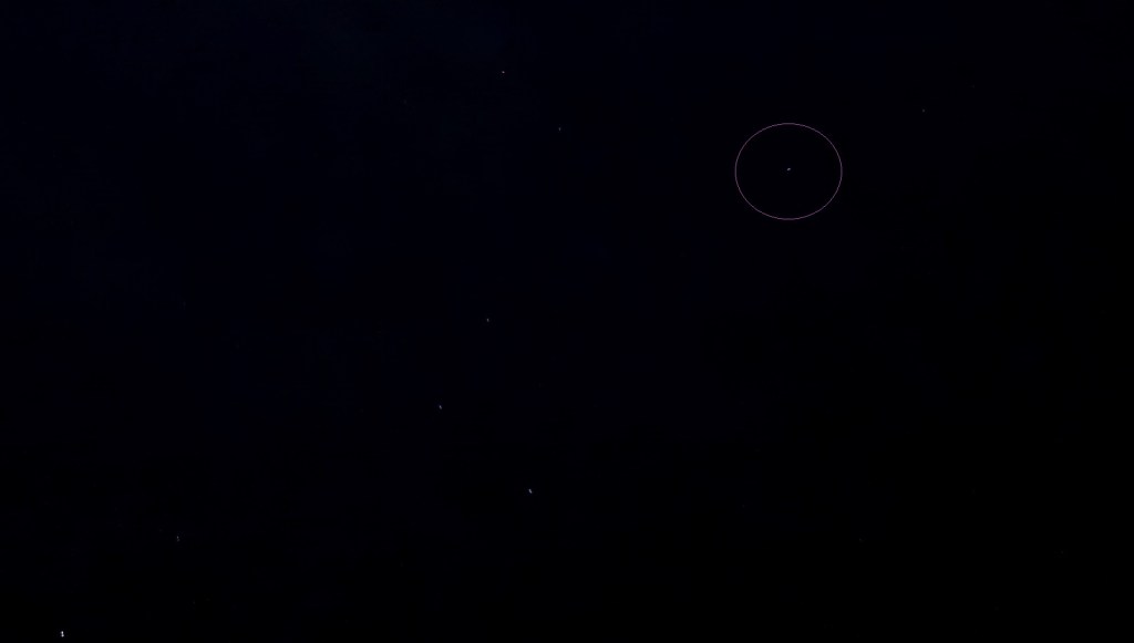 Lightships appeared visibly for several consecutive nights in that region, flying from Canopus, over the Crosses, and winking out. On March 9th, the Lei’hua flew that route, with her signature peachy rose-gold colour brightly aglow, as can be seen in these two photos.