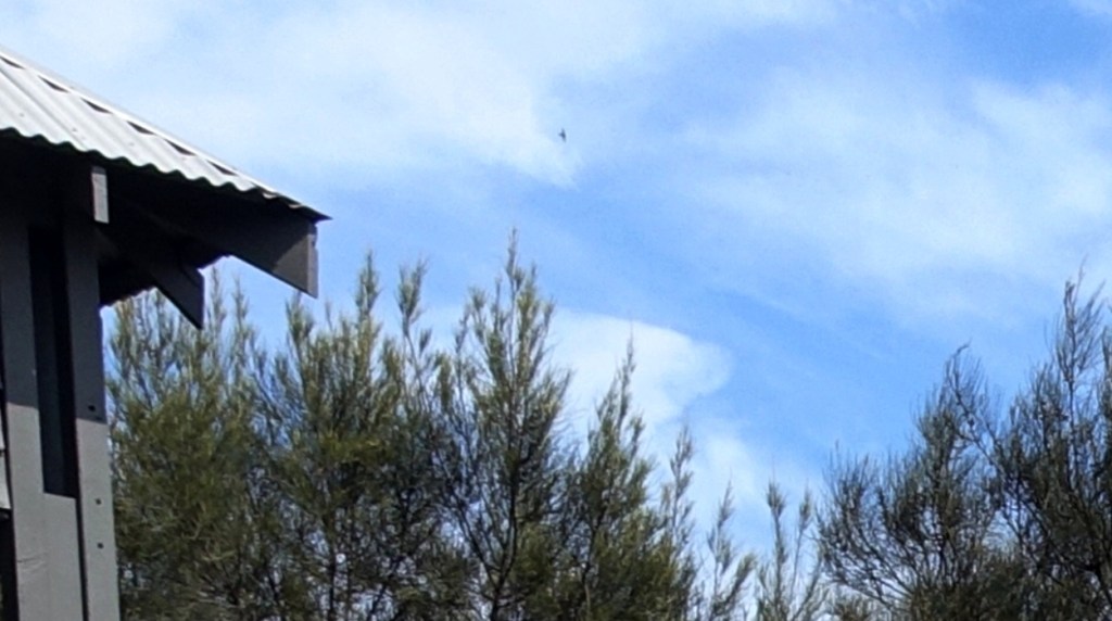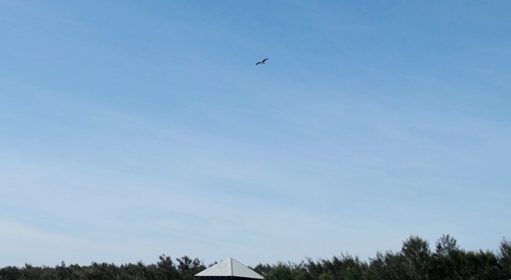 She then moved southward over the wetlands, signalling her position with a beautiful ‘cloud disc’ form, and as she dipped toward the treeline, an osprey eagle arrived and circled multiple times exactly above the disc, until it had disappeared.