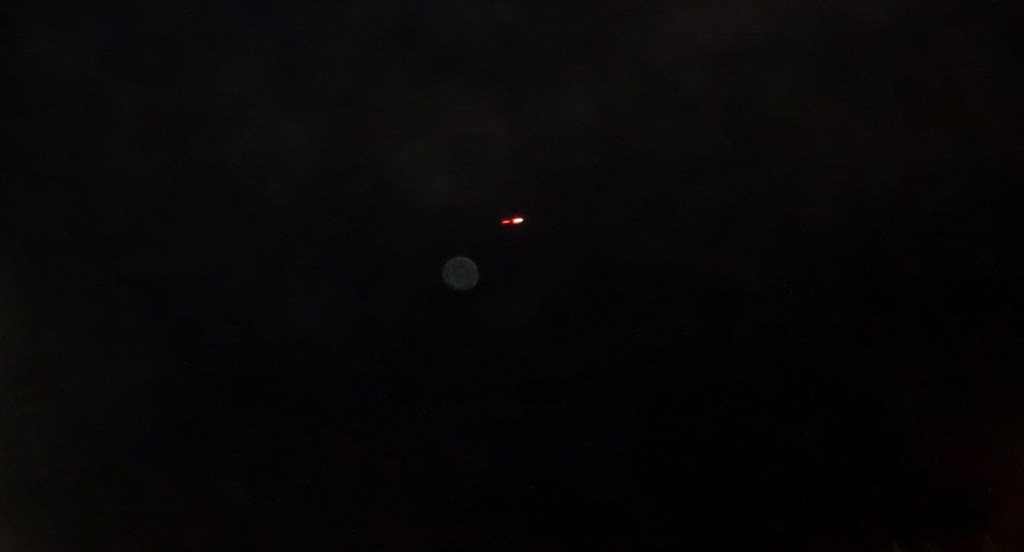 Followed by a peachy-gold flash from the Lei’hua lightship, to the left of the Moon.