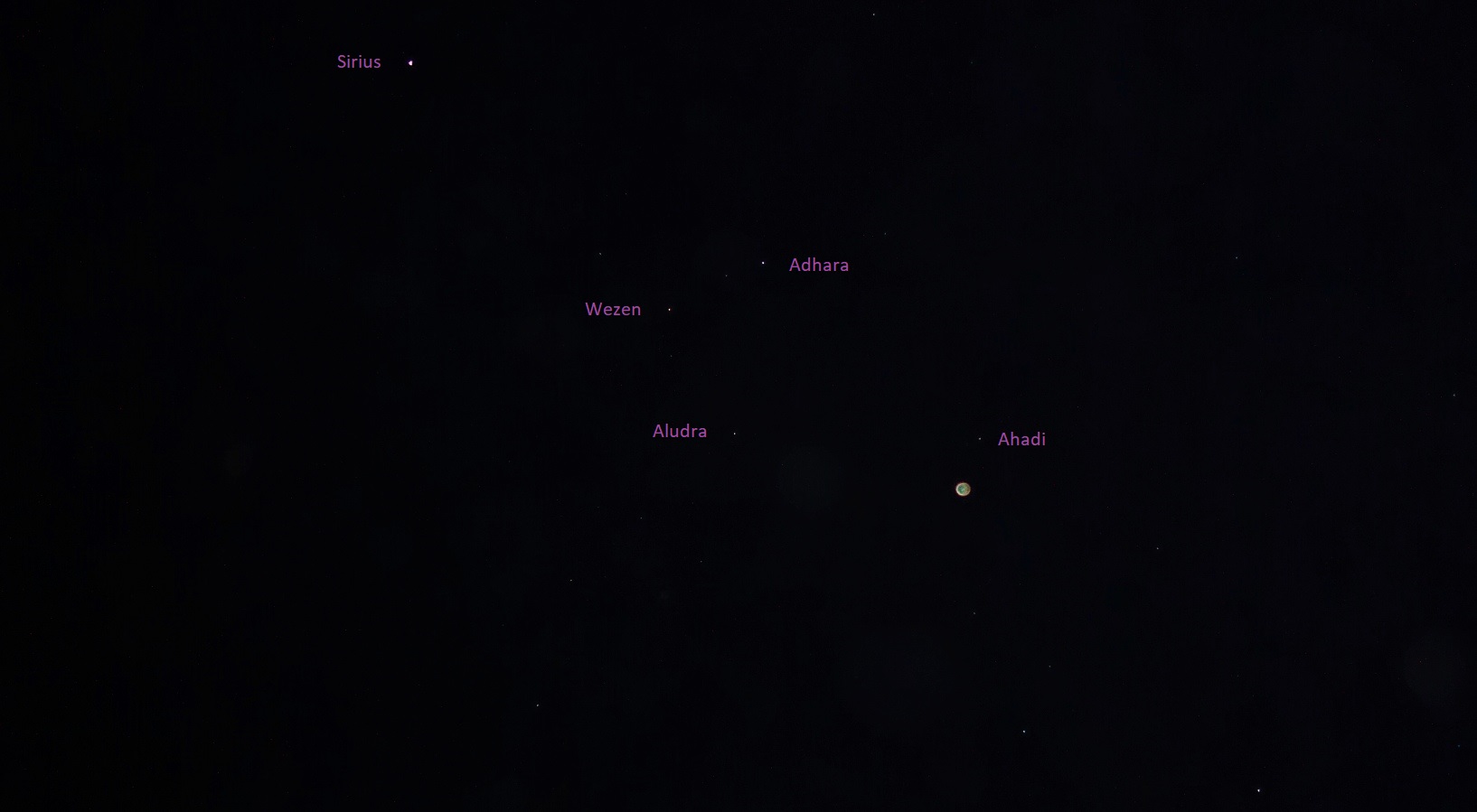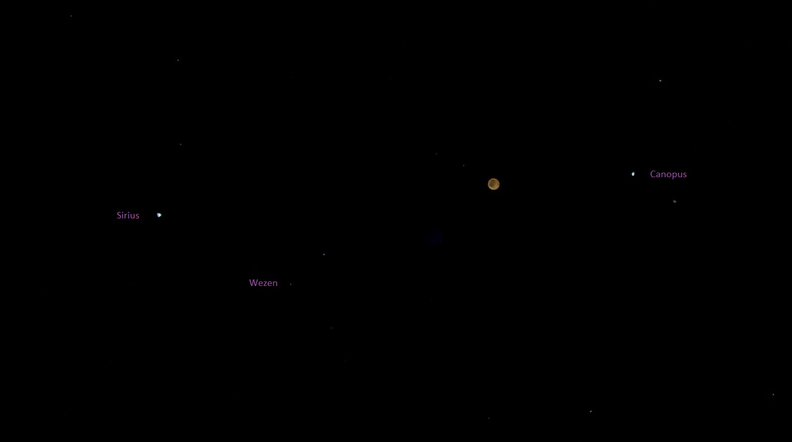 Along with a familiar red orb, floating now inside the kite-like frame of the Hu Shi stars, towards Pi Puppis.